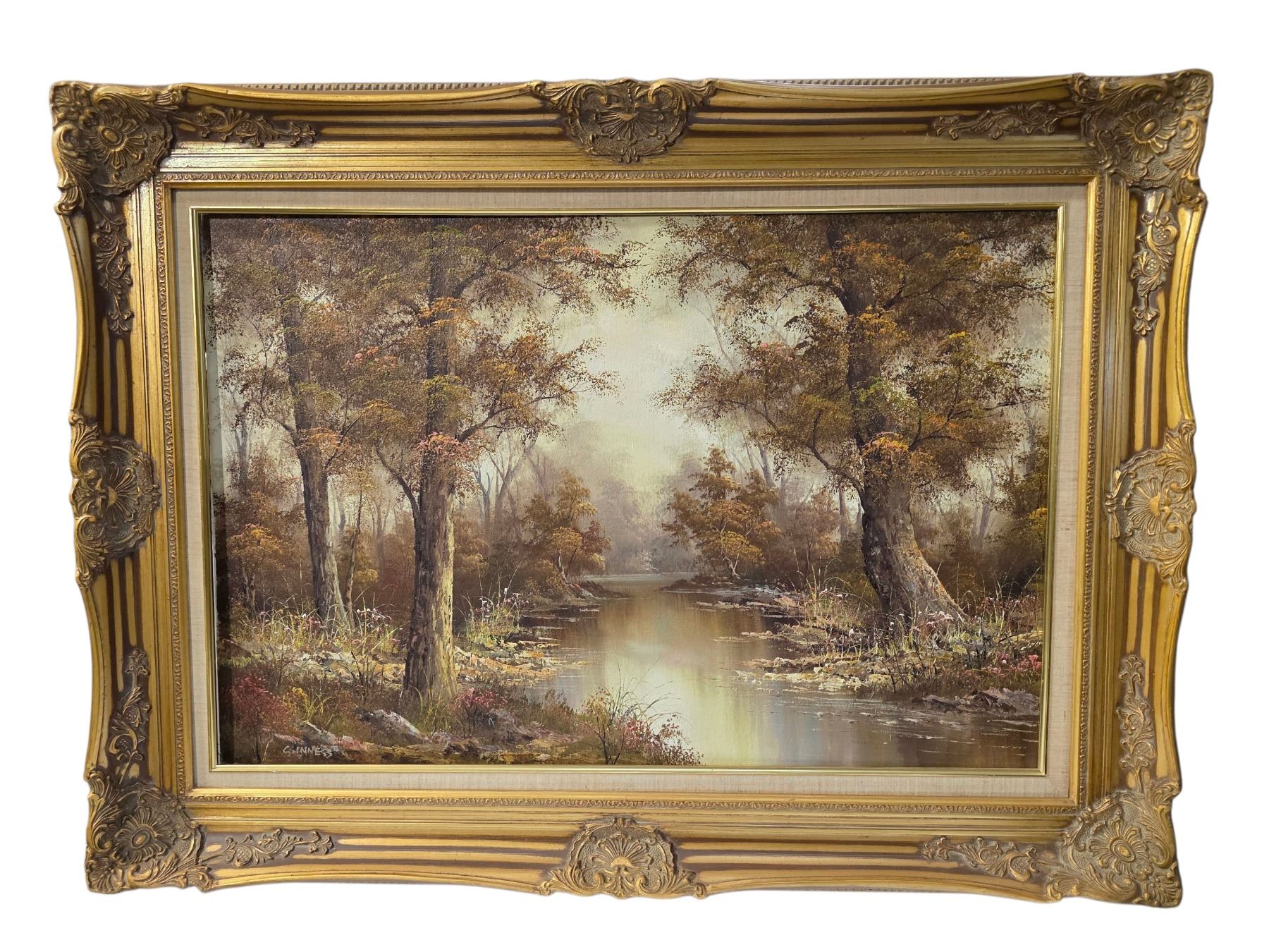 C. Inness Autumnal Landscape Painting - Framed dimensions: 46" x 35"