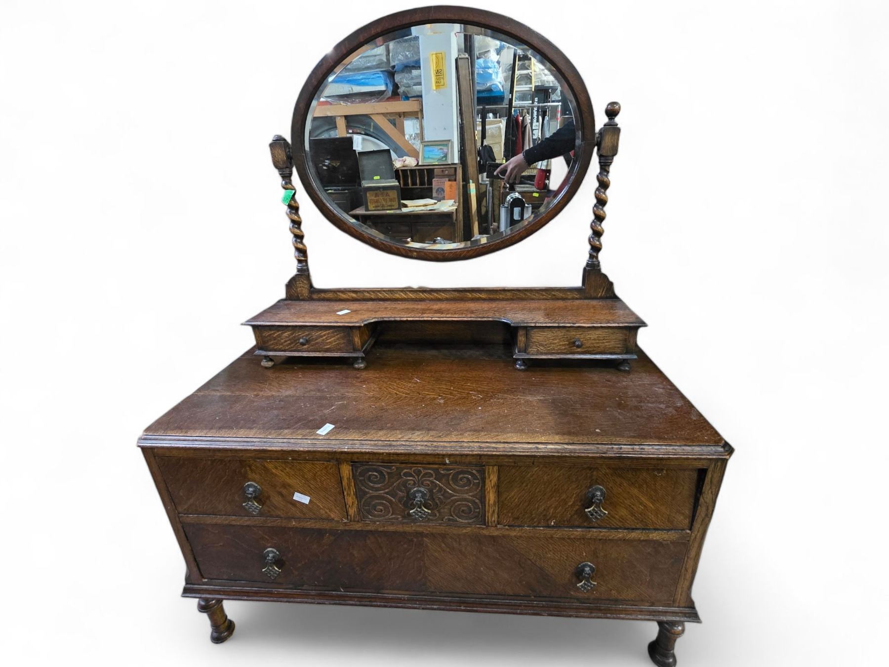 Antique Oak Dresser with Tilt Mirror on Barley Twist Frame - Dresser is 20" x 44" x 58" tall at the back of the Mirror