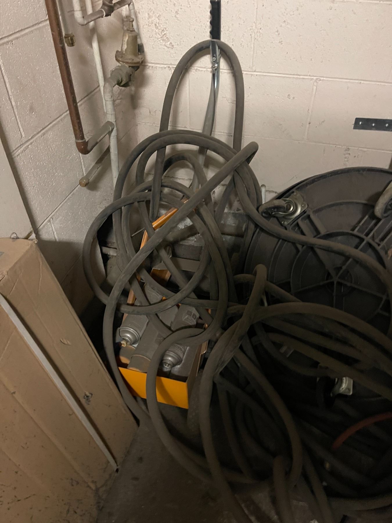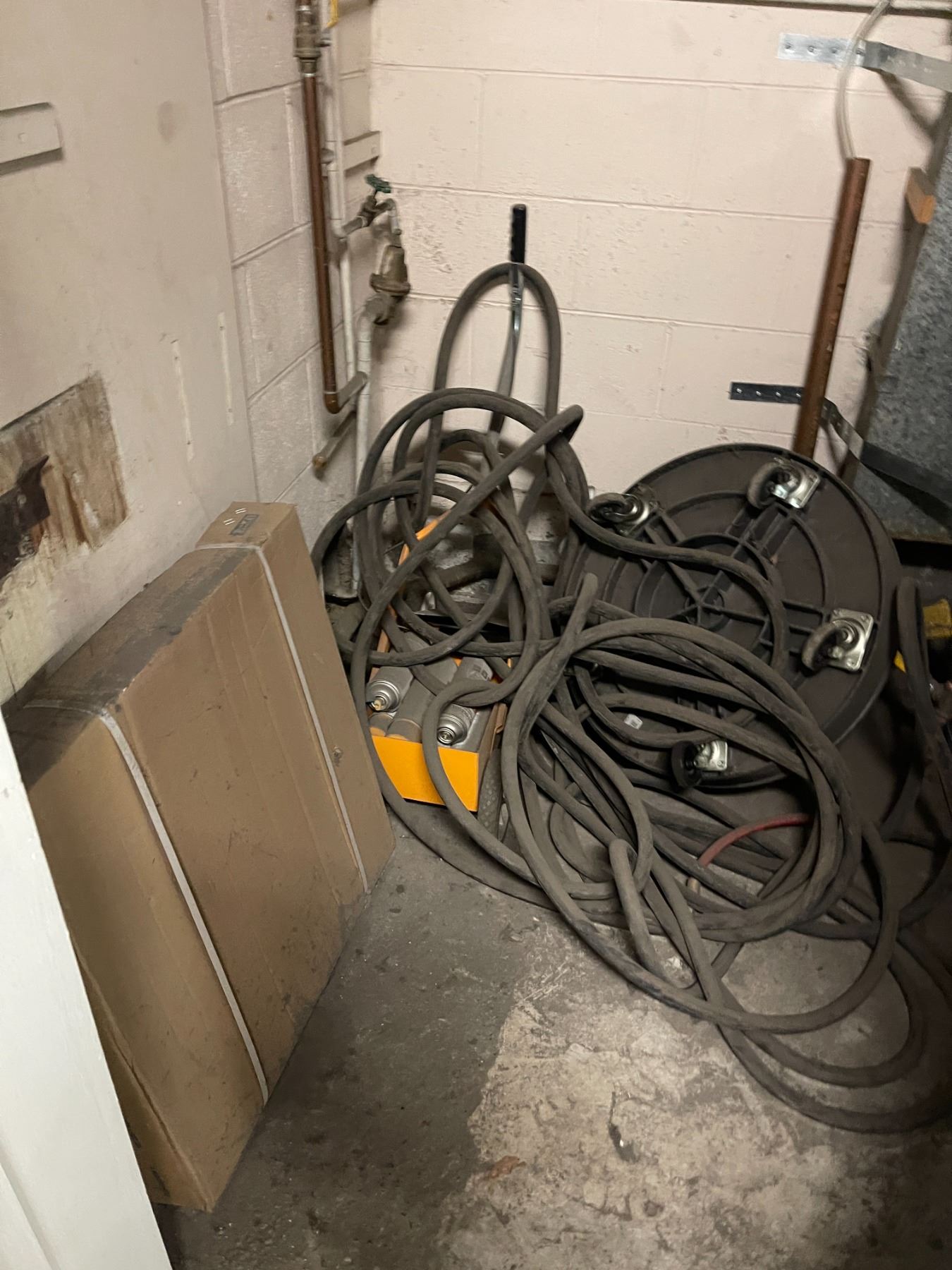 Contents of Room - Includes rolling paint marker steel drum dollies (x1 BNIB), hose, etc.