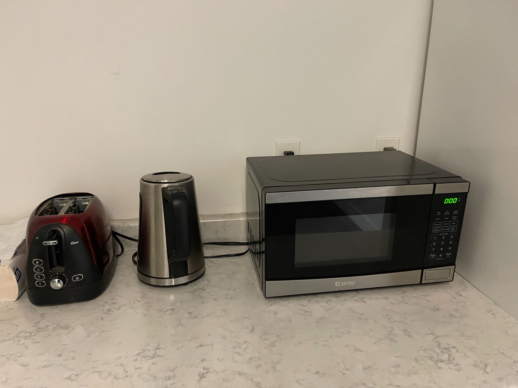 Danby microwave, Oster toaster & kettle