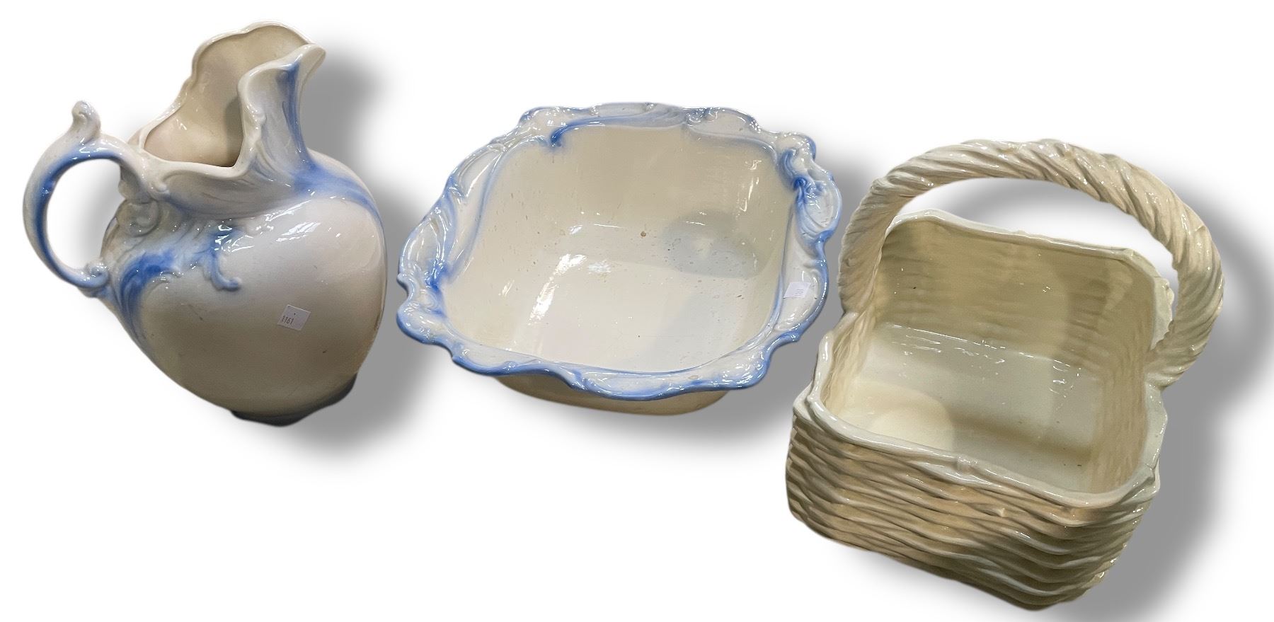 Glazed Ceramic Pitcher with Basin and Basket Shaped Planter