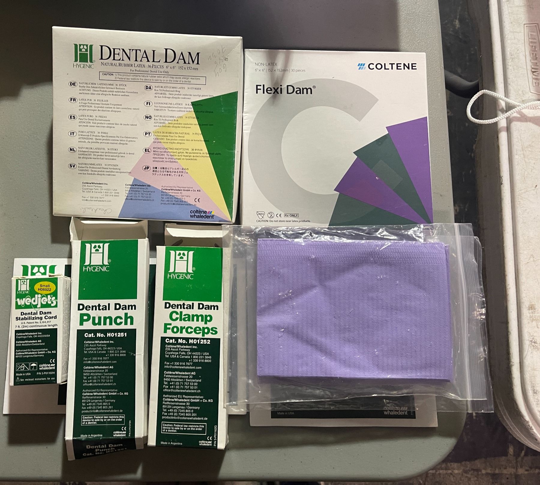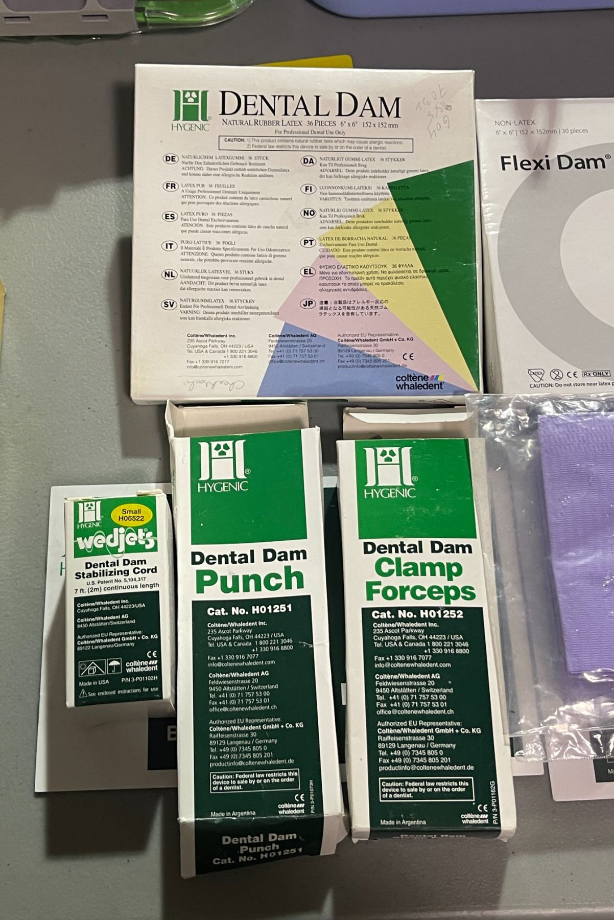 Group lot - Dental dams, clamps, stabilizing cords and templates