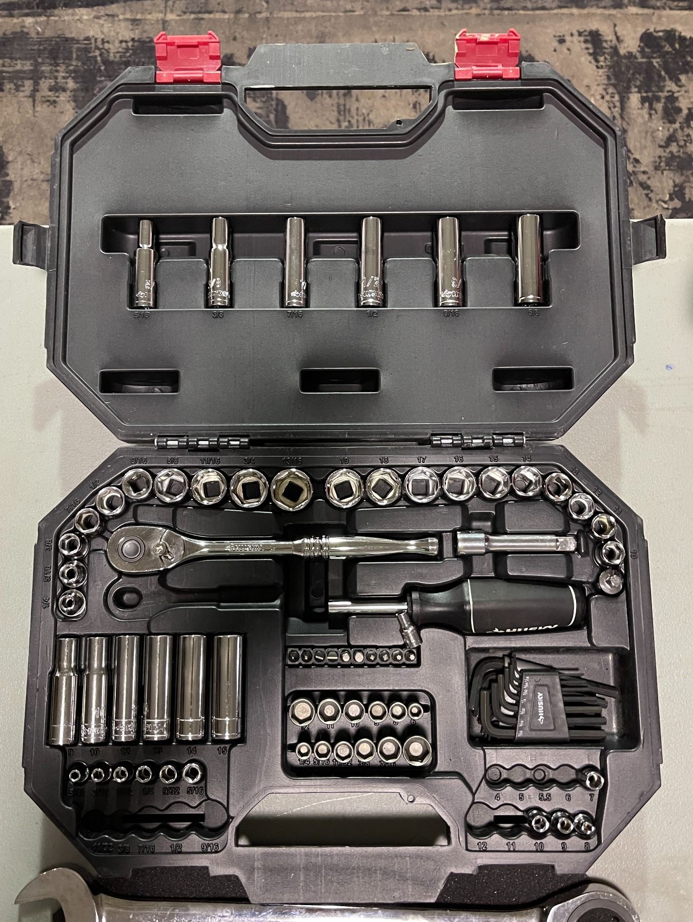 Group lot - Stanley Tools socket set w/ wrenches, allen keys and a set of punches