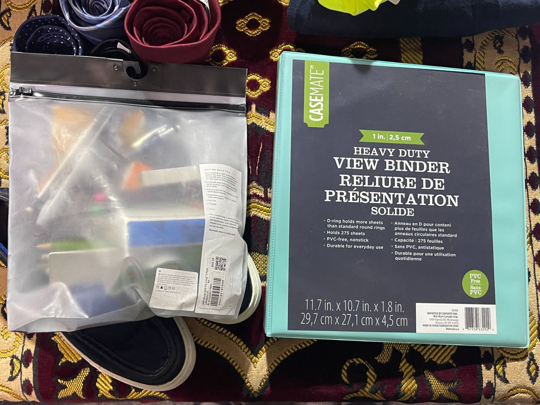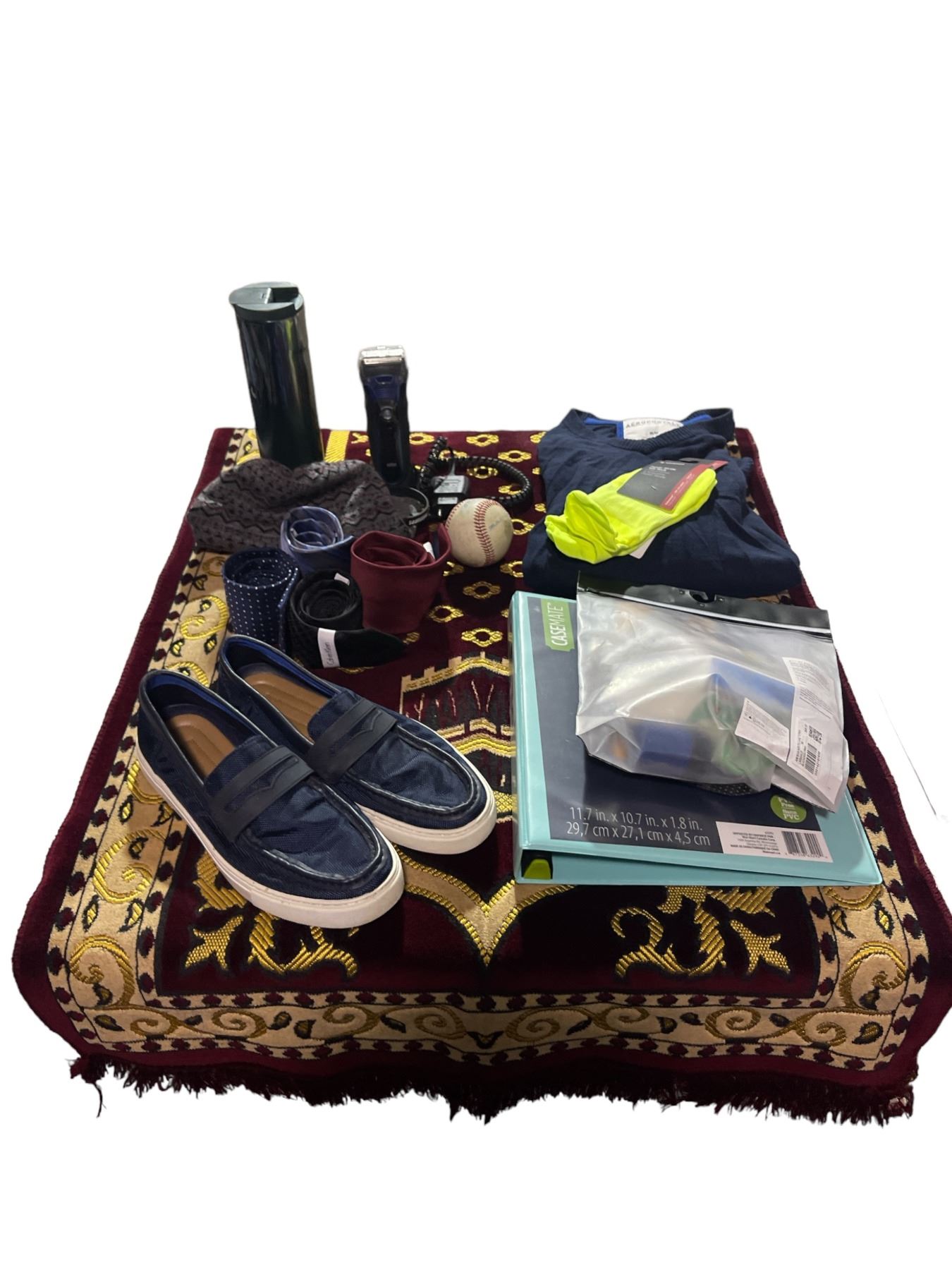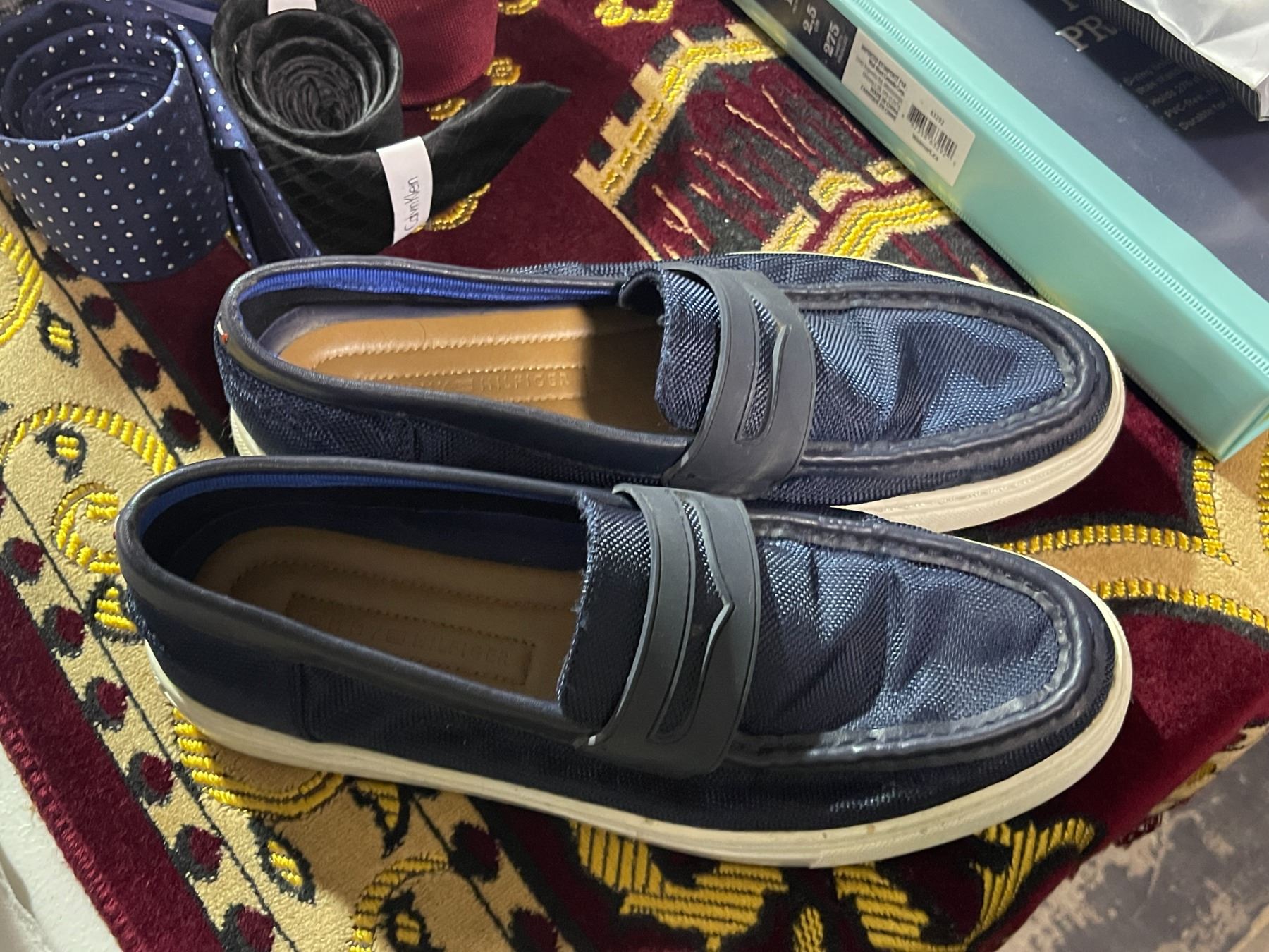 Group lot - Tommy Hilfiger loafers (Size 8) - baseball - binder w/ misc supplies - x4 ties - toque - shaver - thermos - lululemon socks - prayer mat