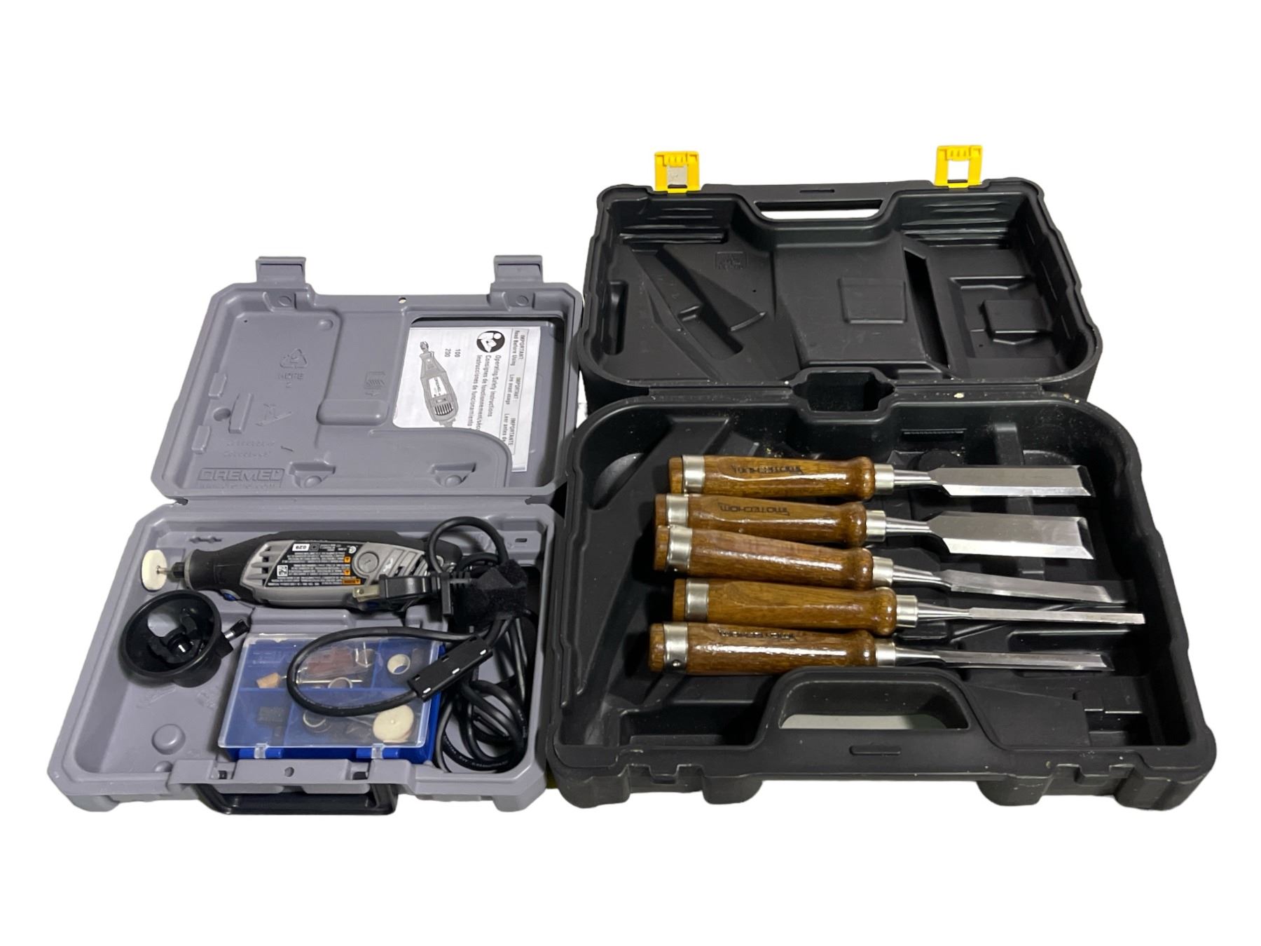 Group lot - Wood carving / joinery chisels - Dremel rotary tool w/ attachments in hard case
