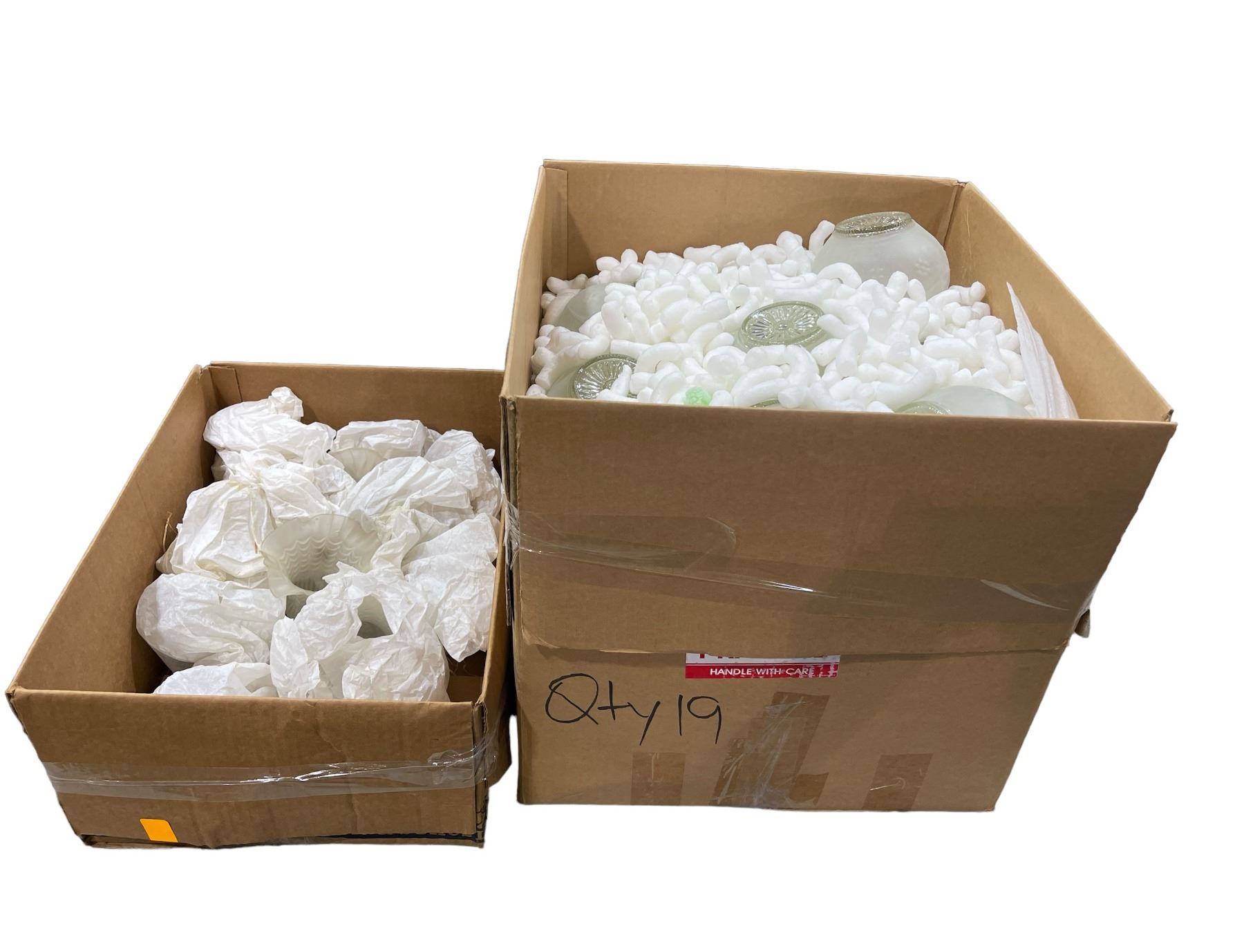 Group lot - x2 boxes of vintage frosted glass for light fixtures (Approx 25+ pieces)