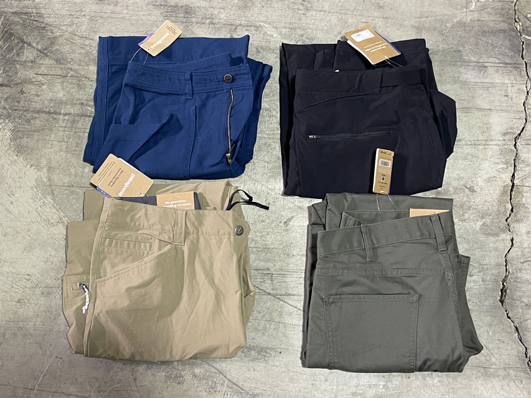 Group lot - x4 Patagonia Pants - Approx Value : $375 - Beige (36/32) Mens w/tags - Blue (10) Womens w/tags - Green/Grey (34/32) Mens w/tags - Black (34/32) Mens w/tags