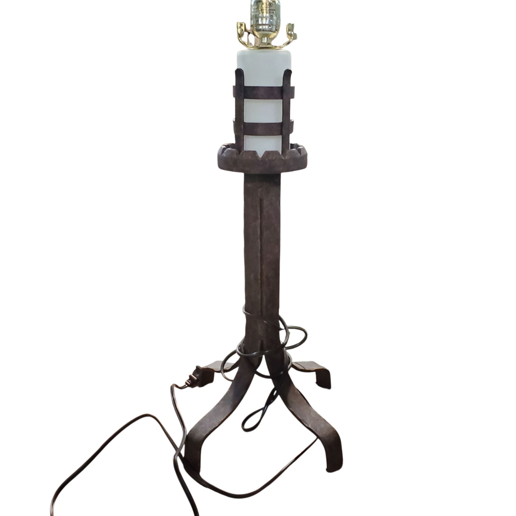 Group of 2 Set Table Top Lamps - includes Pair of Medieval-Style Metal Lamps & Brass-Colored Glass Lamps