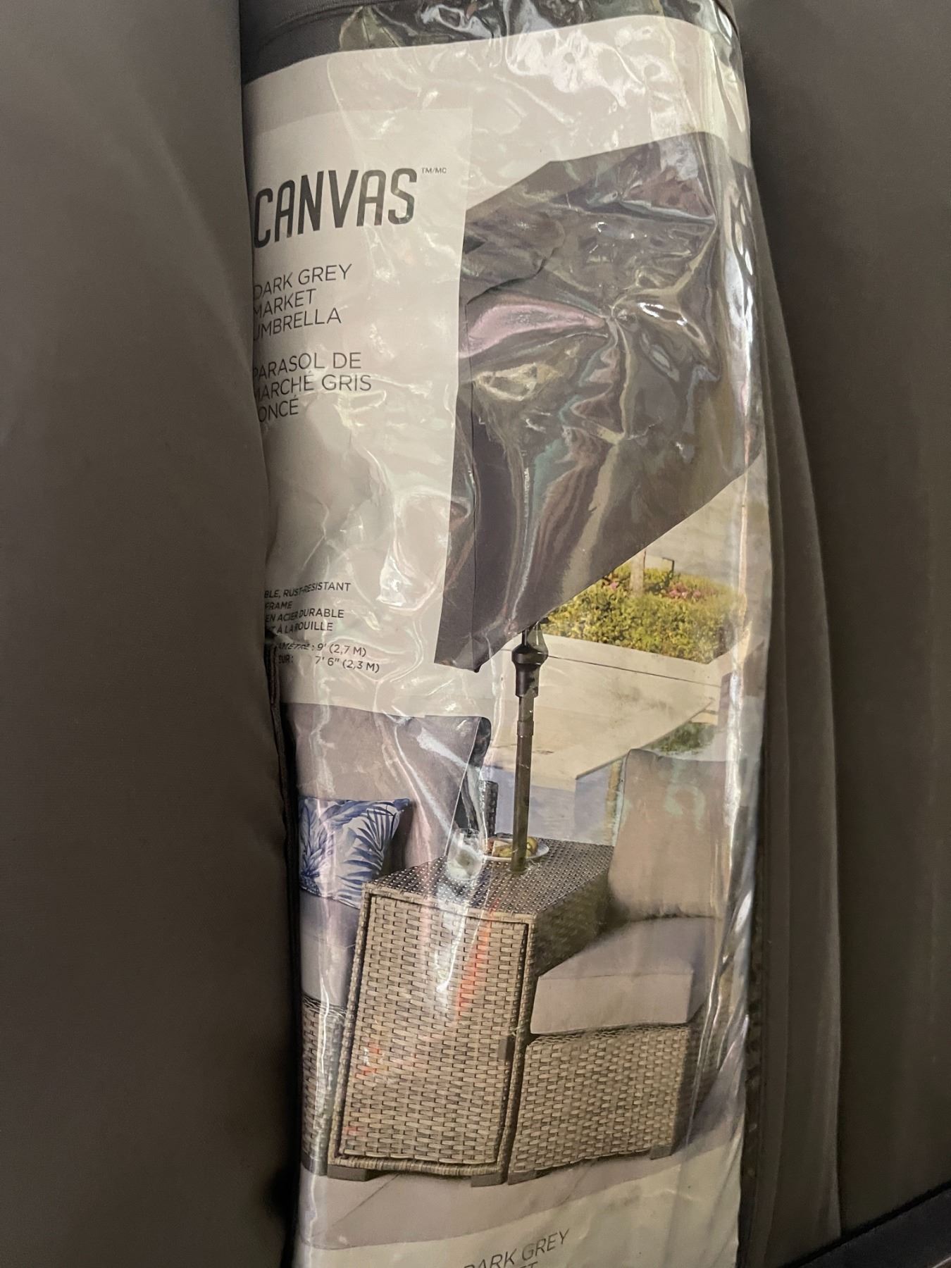 Group of 6 Canvas Dark Grey Market Umbrellas - some might be incomplete