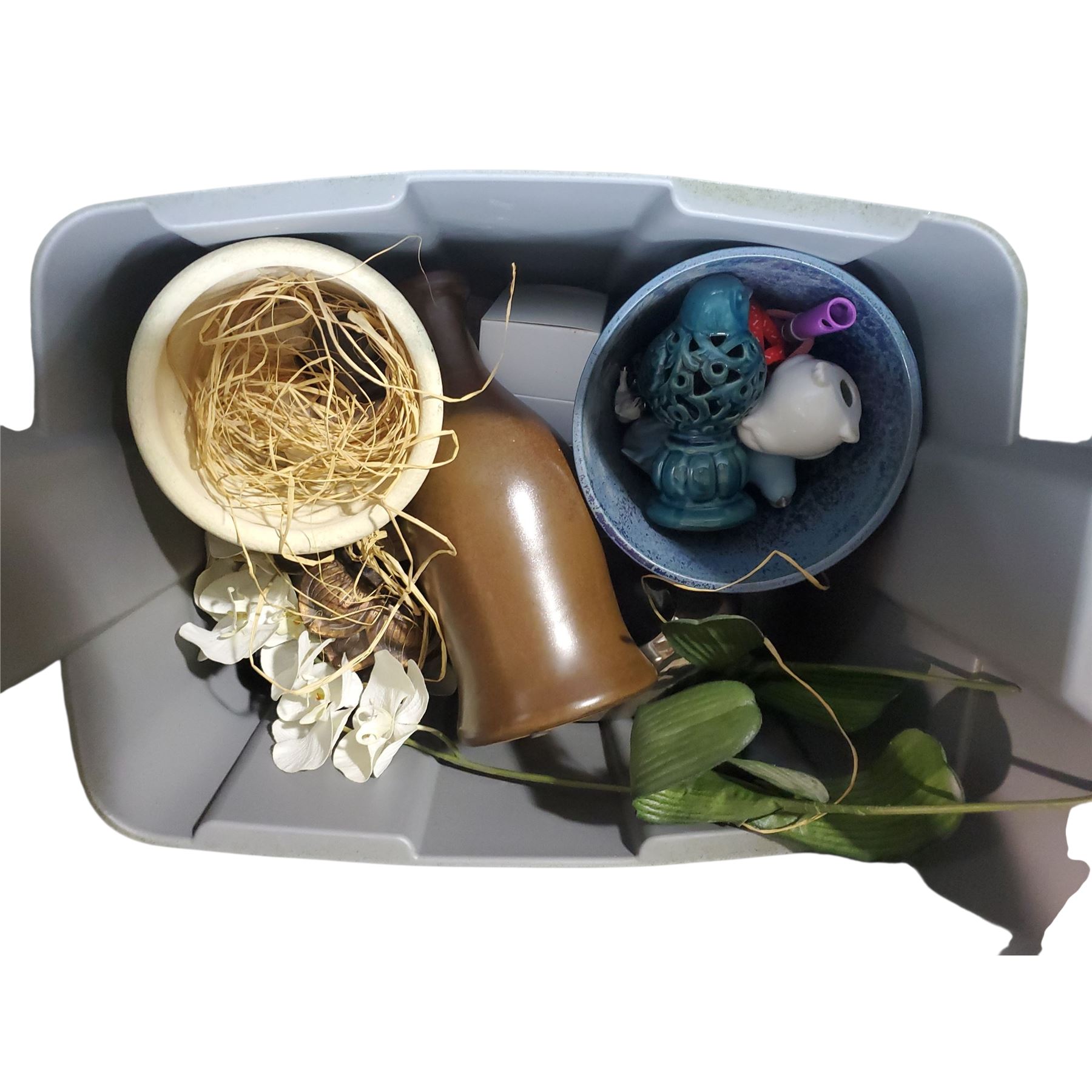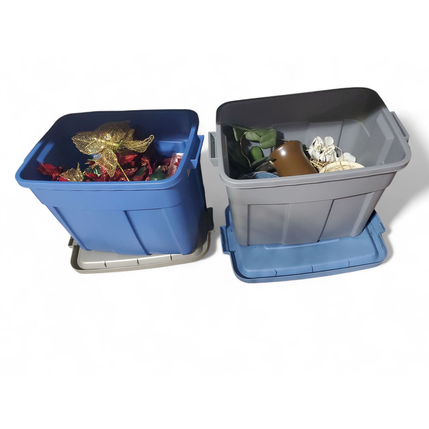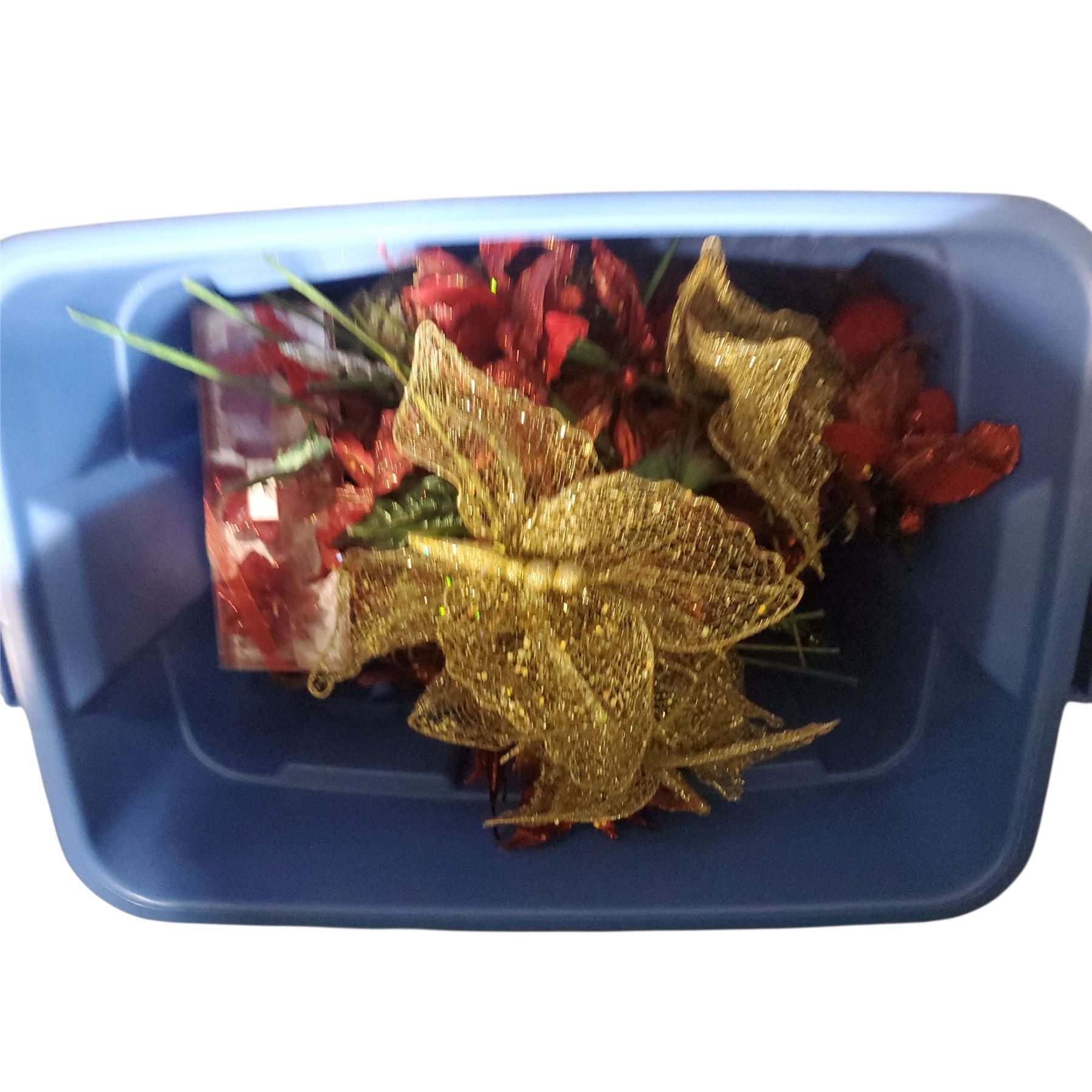 Group of 7 Totes full of Christmas Decor - includes Floating Candles/ Poinsettia Tree Ornaments/Misc. Balls Ornaments & More (Totes are NOT included)