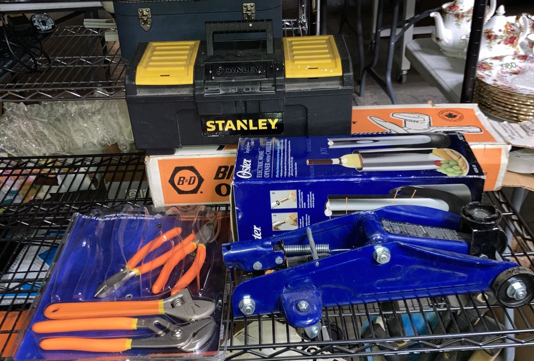 Group of Misc Including - Stanley Tool Box, Oster Electric Wine Opener, Hydraulic Trolley, 300mm Double-edge Hedge Trimmer, Etc.