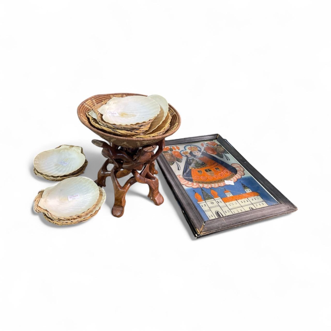 Group of Misc - Wood Decor w/Basket, Shells, Framed Pictures, Etc.