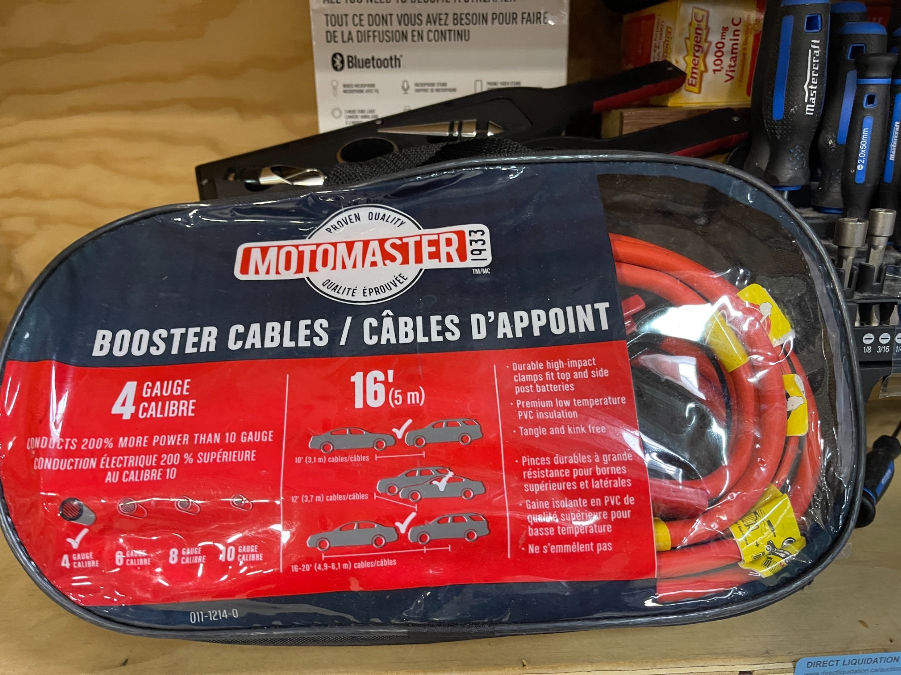 Group of Tools & Supplies Lot - includes Car Booster Cables, Mastercraft 4V USB-C Cutter, Hanmatek 3