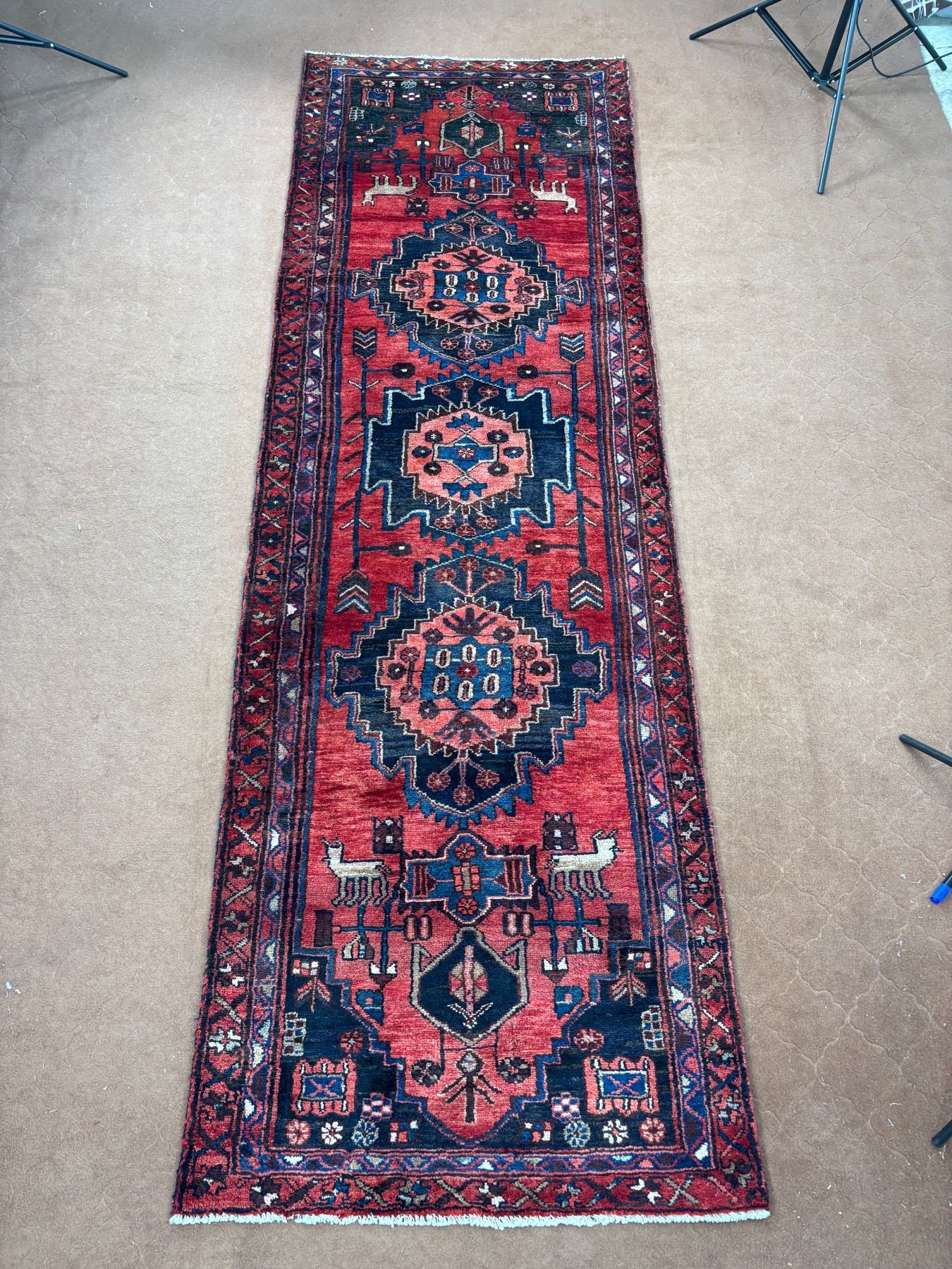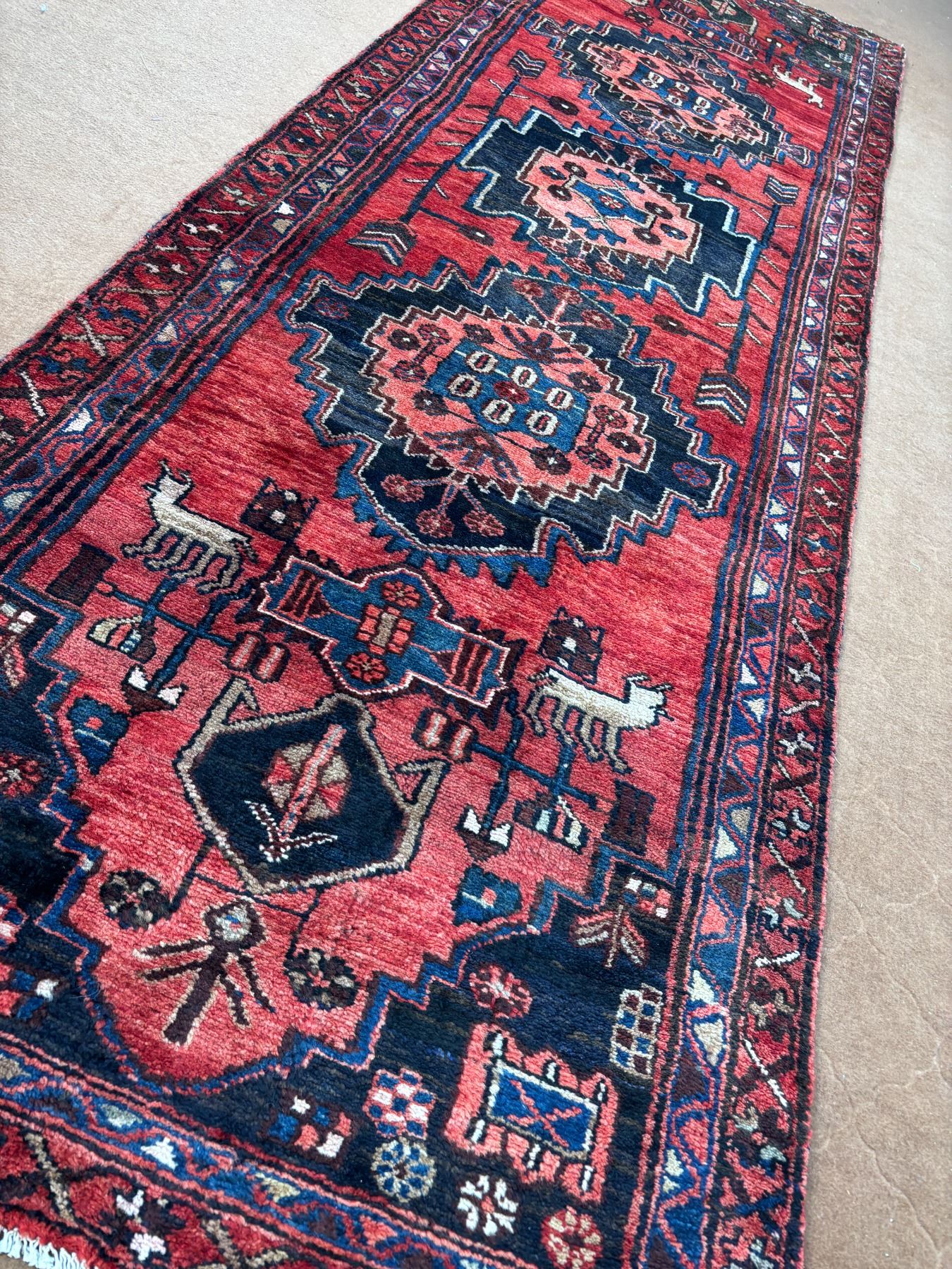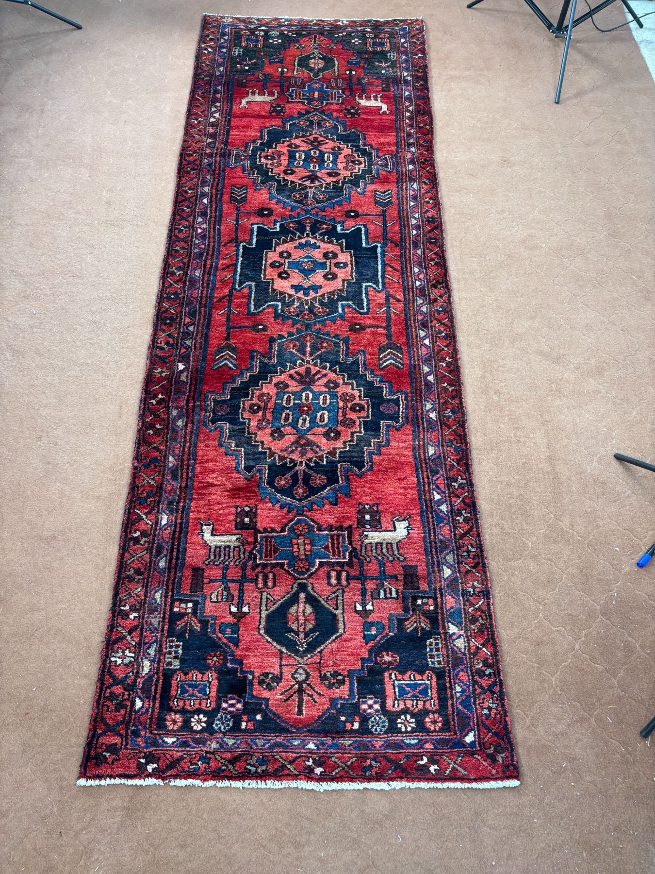 Hakan Kourosh 100% Authentic Hand Knotted Wool Persian Rug Origin: Zanjan 100% Authentic Hand Knotted Wool Persian Rug Origin - Geometric Map Beautiful colouring (Size: 6.7" ×3.6 " f 200×107 cm)