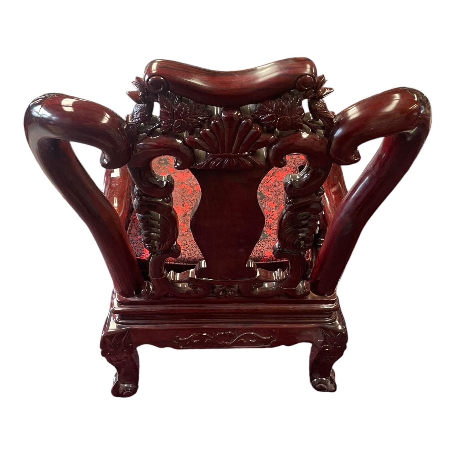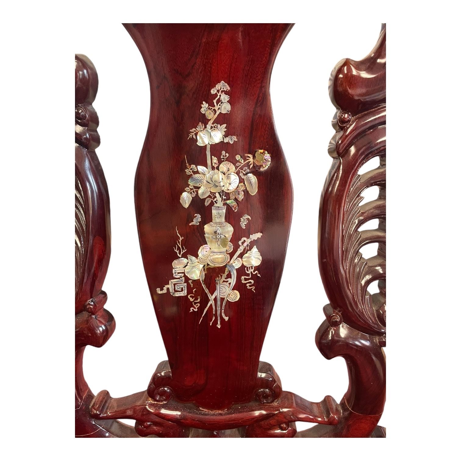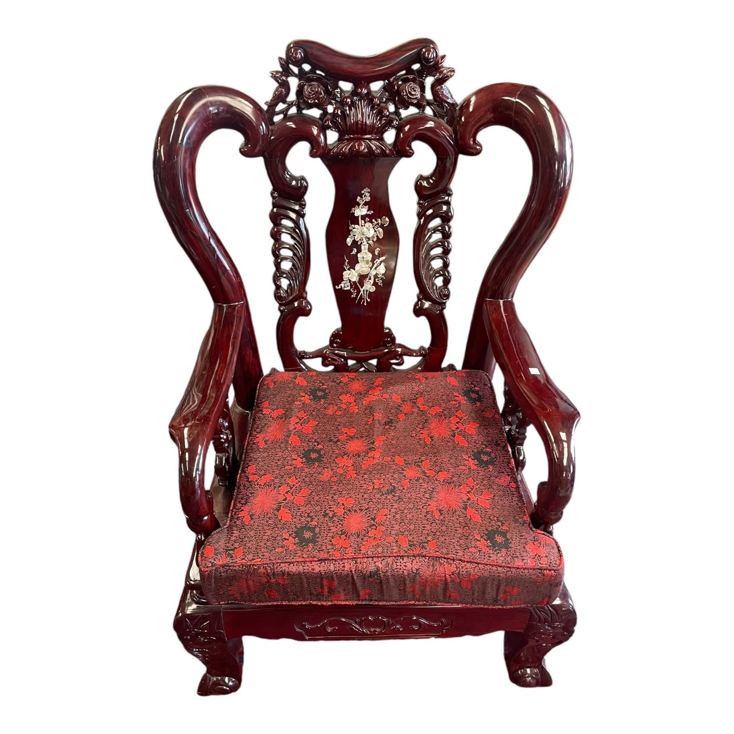 Heavy Ornately Carved Asian Arm Chair With Mother of Pearl Inlay 2 of 2