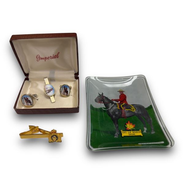 5 Vintage Rcmp Collectibles, Plate, Cuff Links, Money Clip, Etc..1280 - 5 Vintage Rcmp Collectibles, Plate, Cuff Links, Money Clip, Etc..