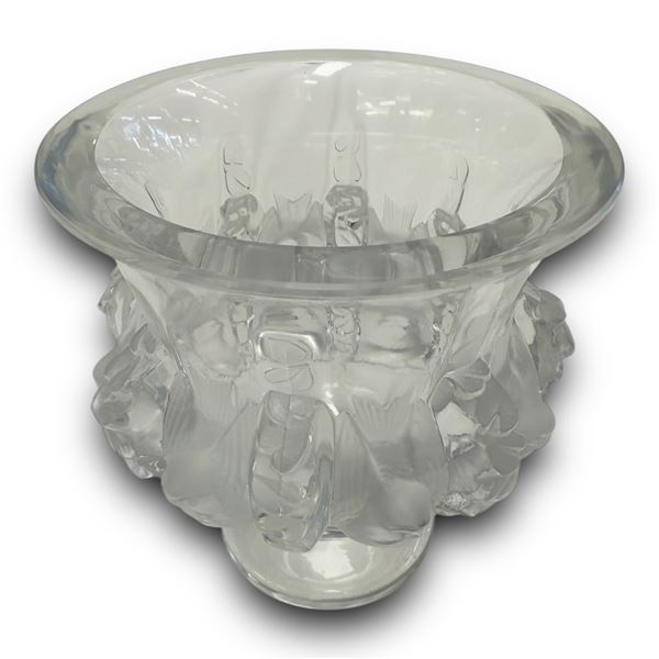 Vintage Lalique Cristal Vase With Heavily Embossed Birds1281 - Vintage Lalique Cristal Vase With Heavily Embossed Birds