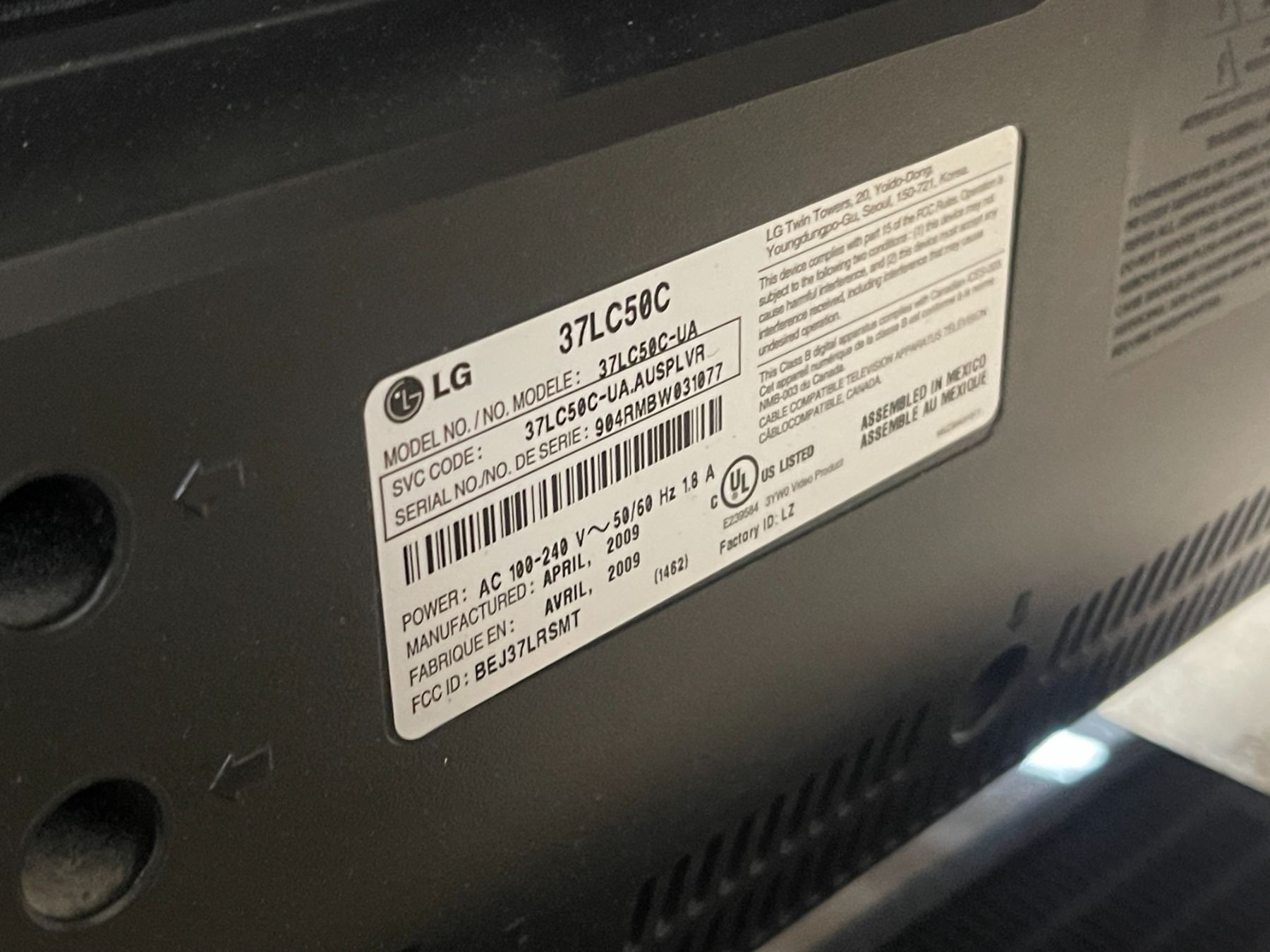 LG TV Model - 37LC50C-UA