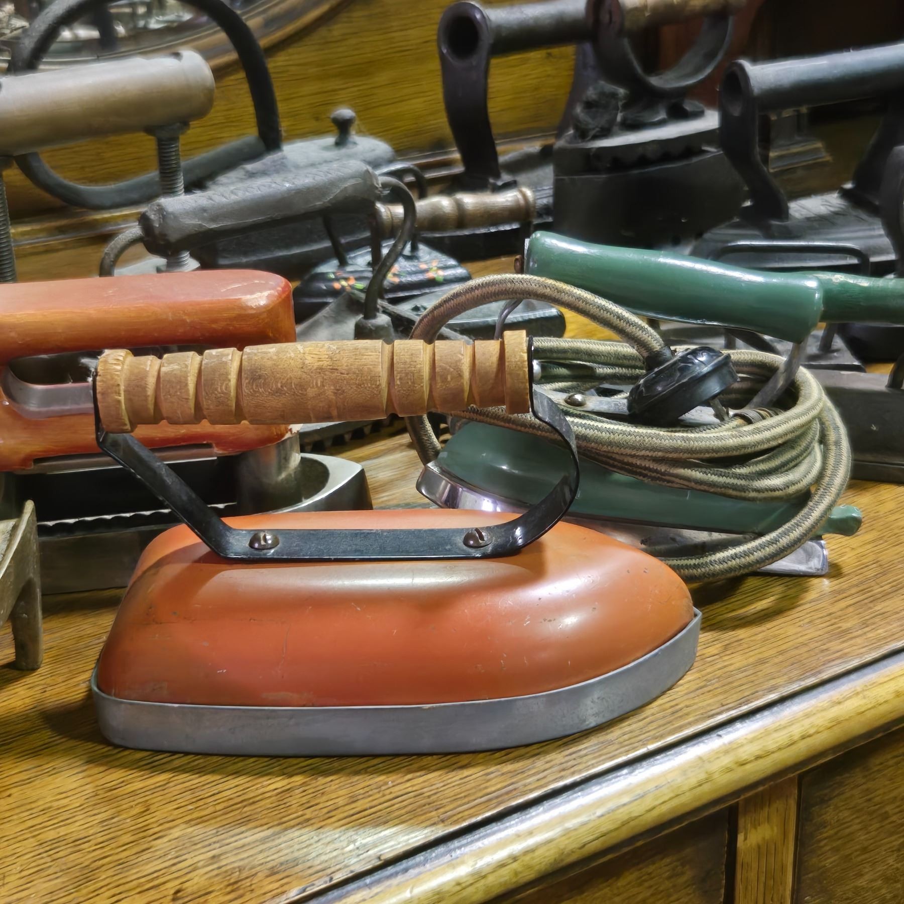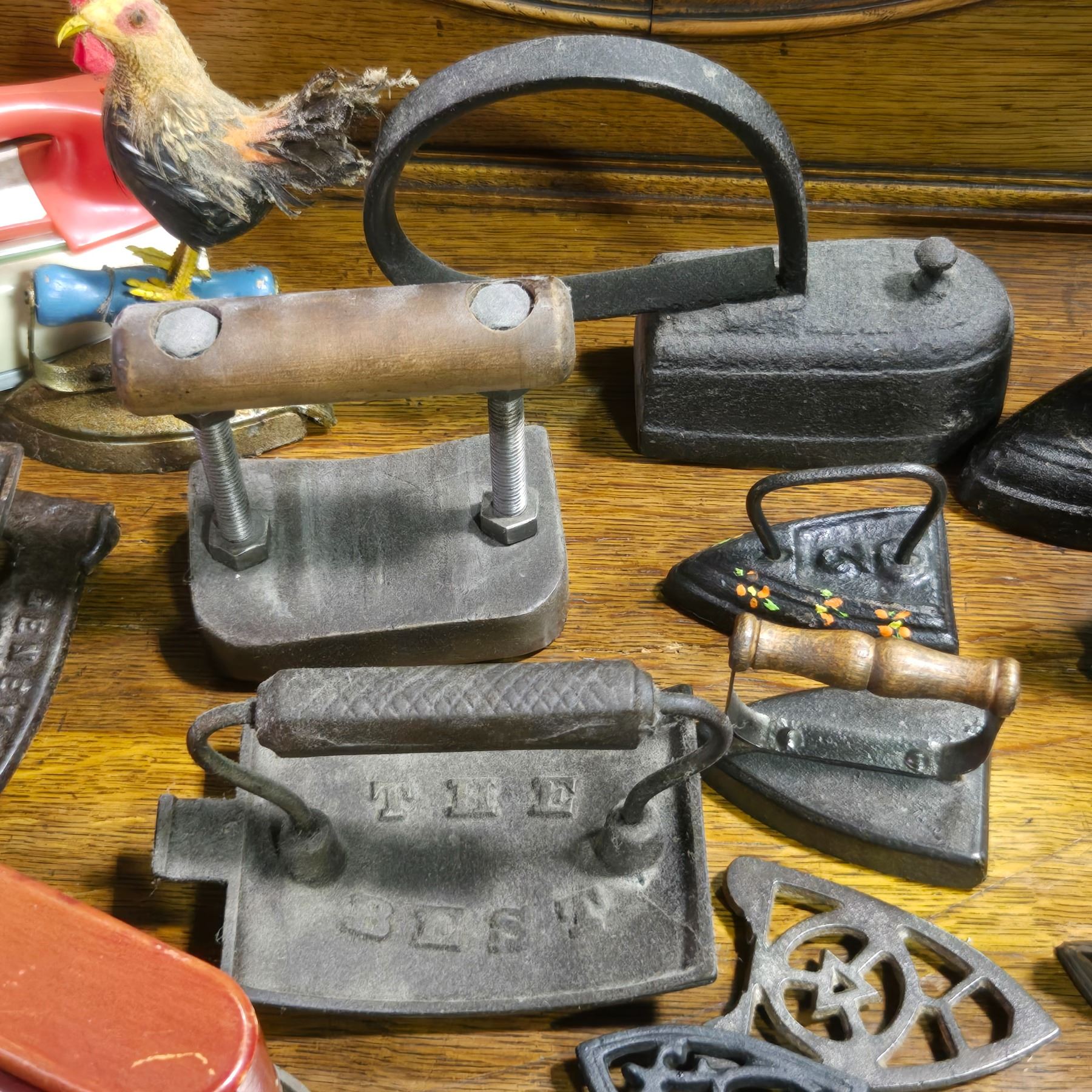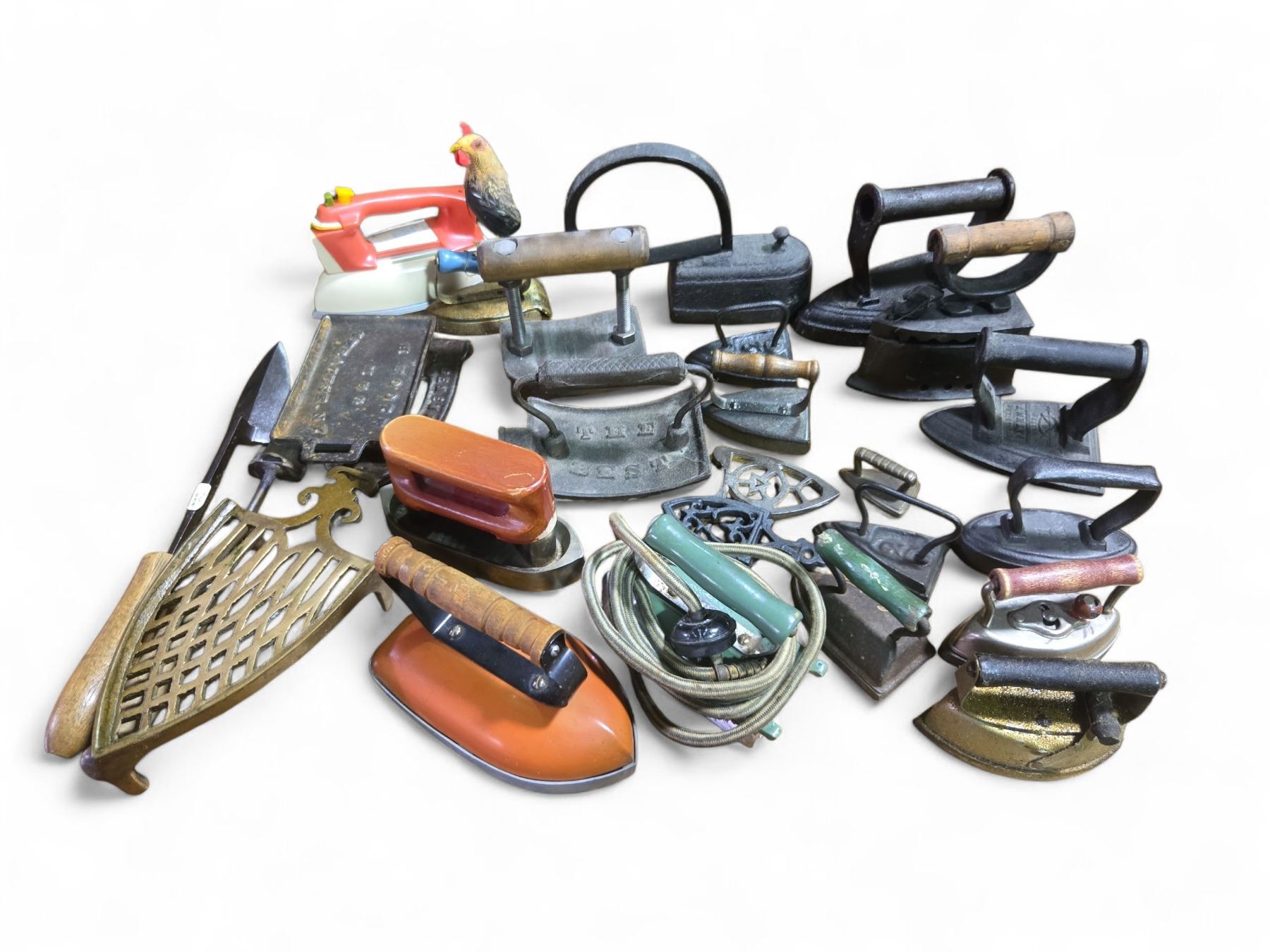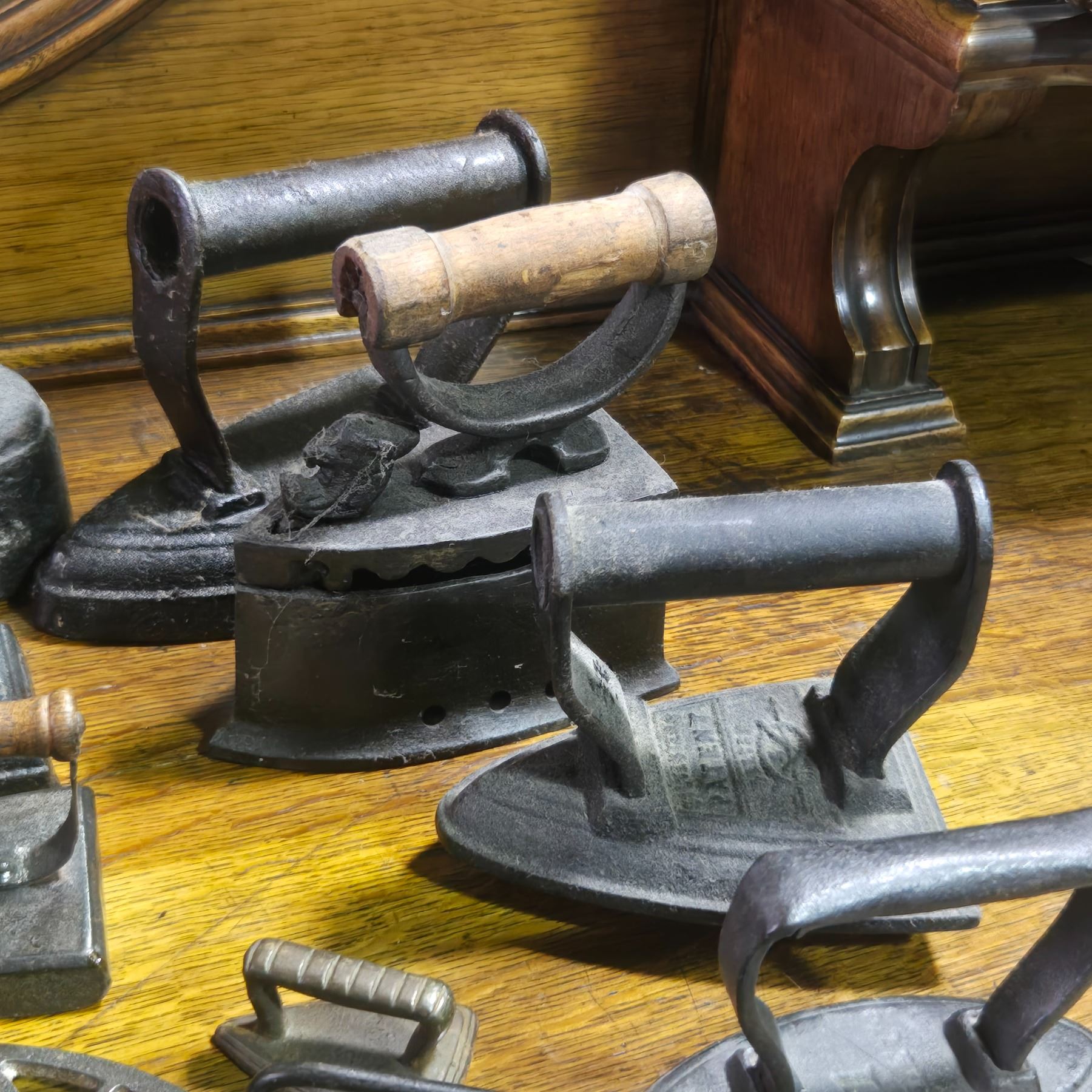 Large Group of Vintage Irons, Toy Irons and Ironing Accessories