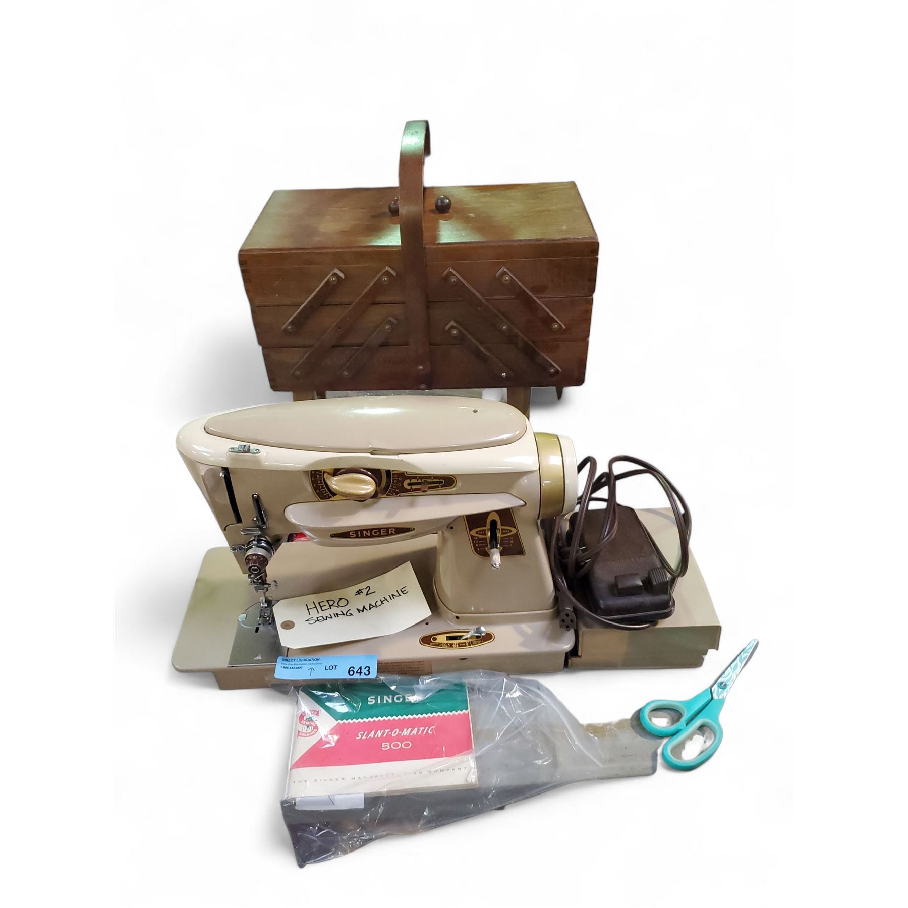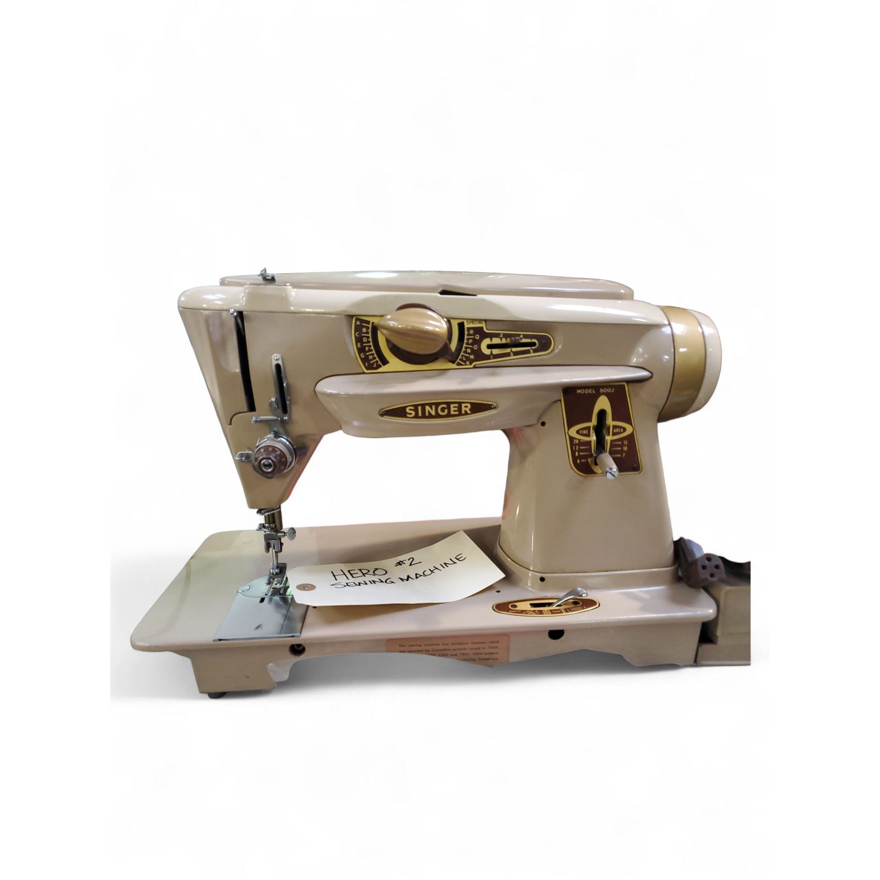 Movie Set Dec Singer Sewing MAchine Slant-O-MAtic 500 - includes PEdal, Manual & NEW Pair of Sailor Scissors