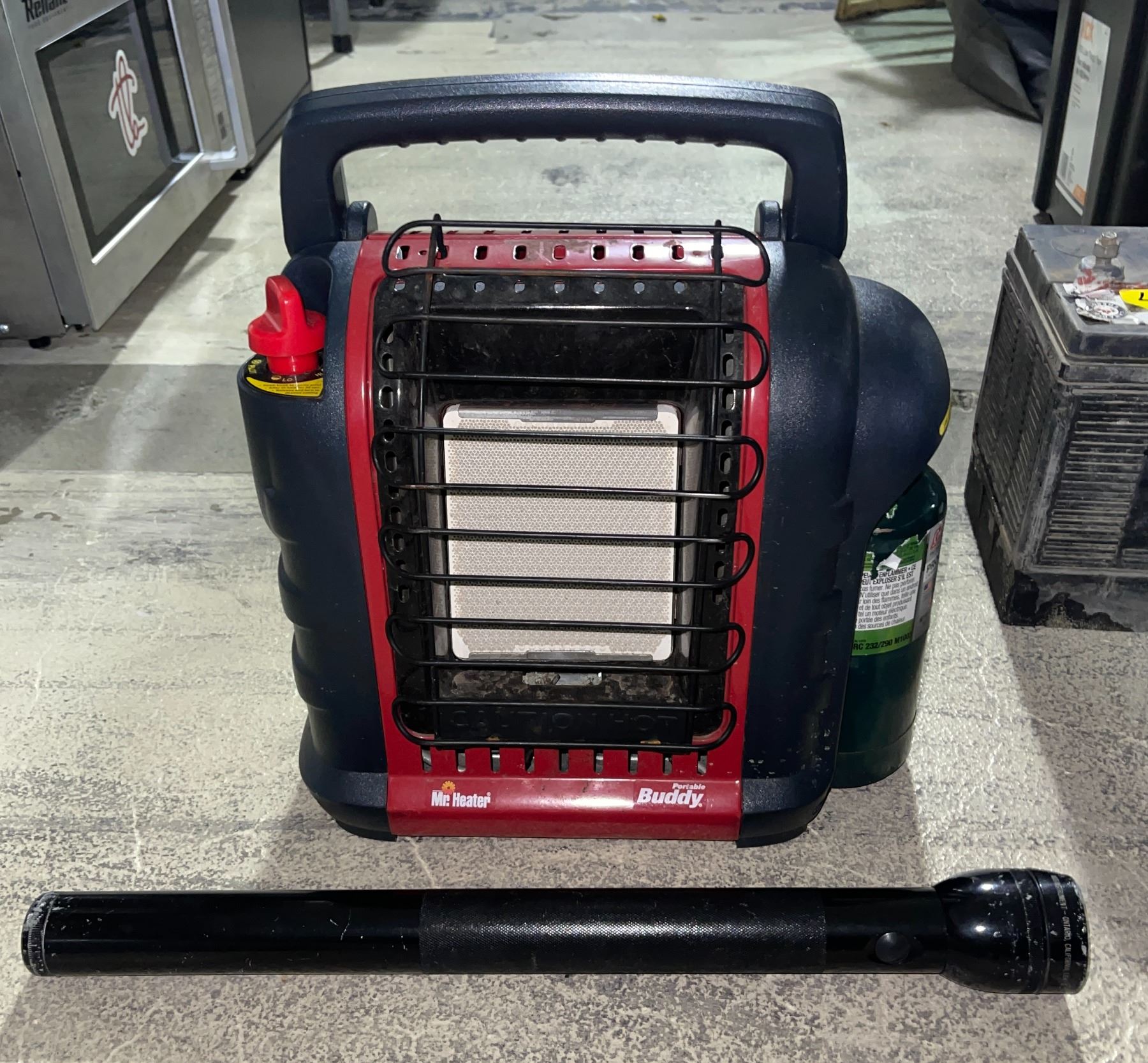 Mr. Heater portable butane heater w/ butane tank & 19.5" Maglite flashlight (Tested & Working)