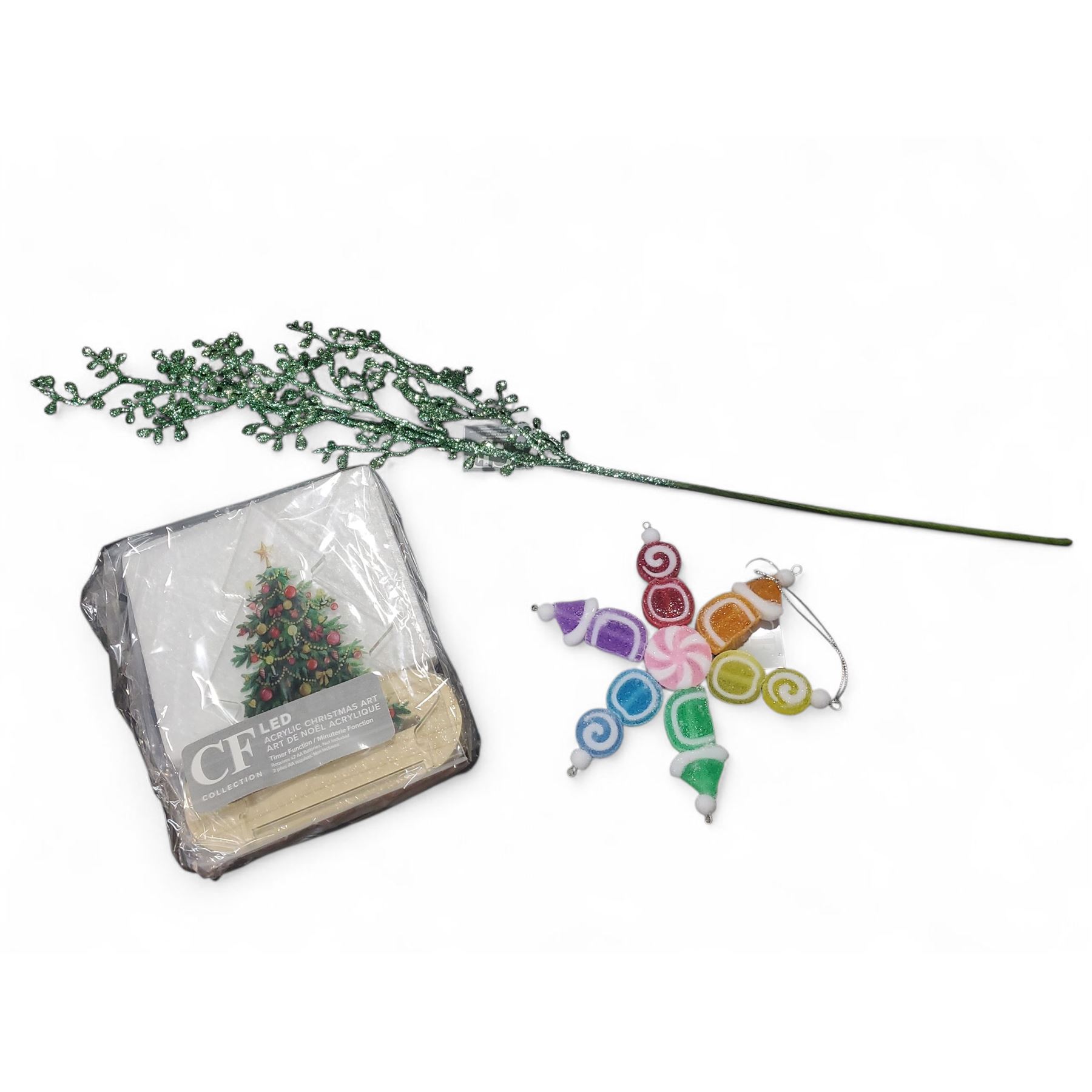 NEW Christmas Decor - 2 Boxes includes Ornaments Candy 6"/Acrylic Christmas Art & Decorative Sparkle Branches