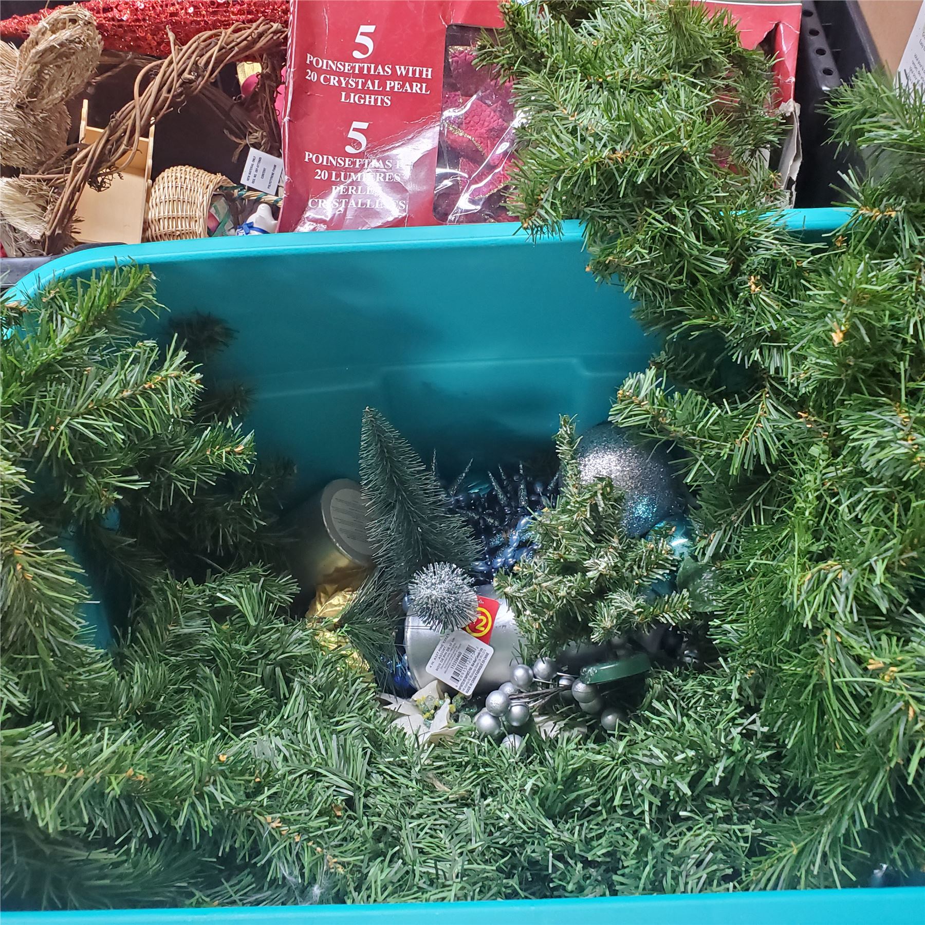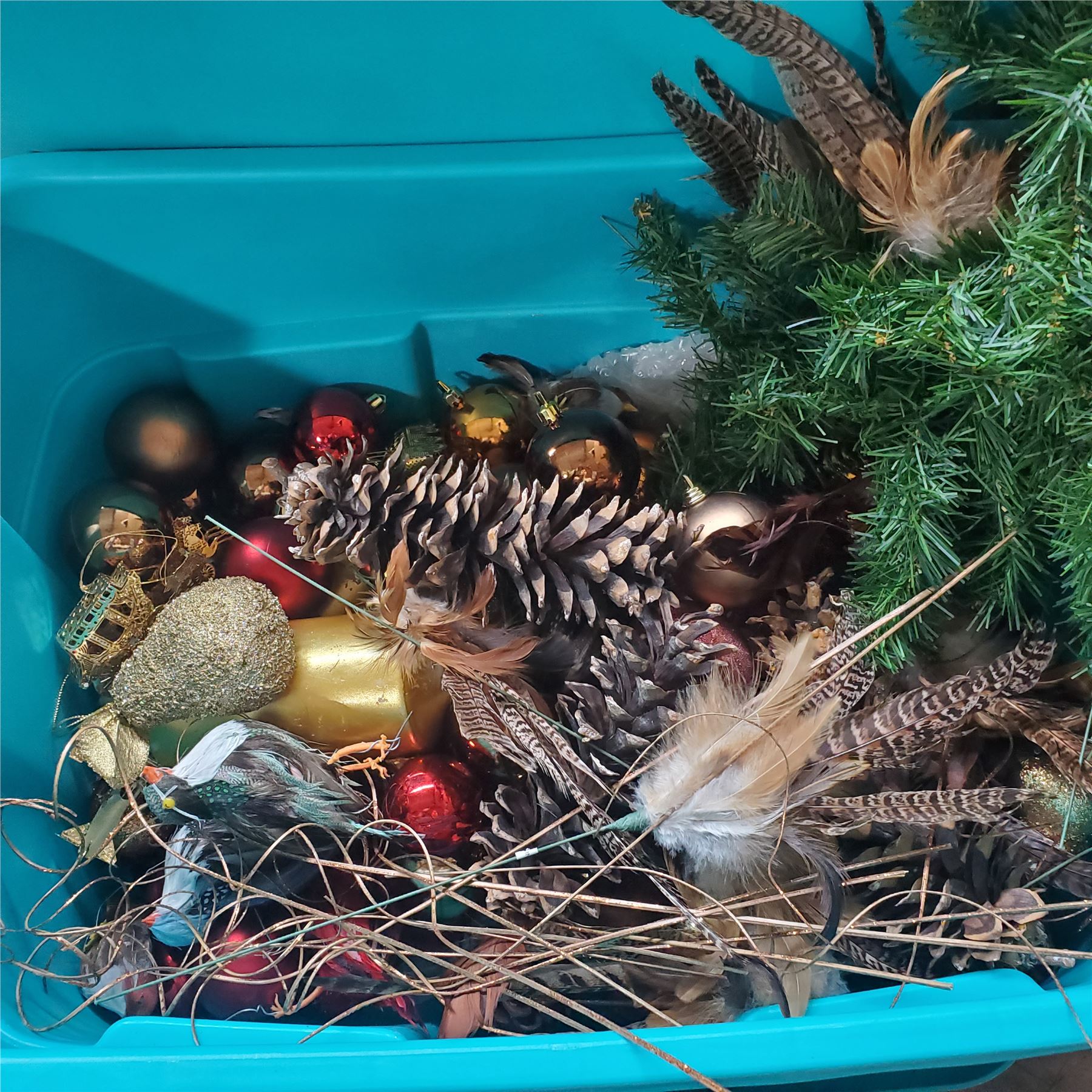 NEW Group of 2 Bins of Christmas Decor - includes Frames Arts & Assorted Christmas Ornaments