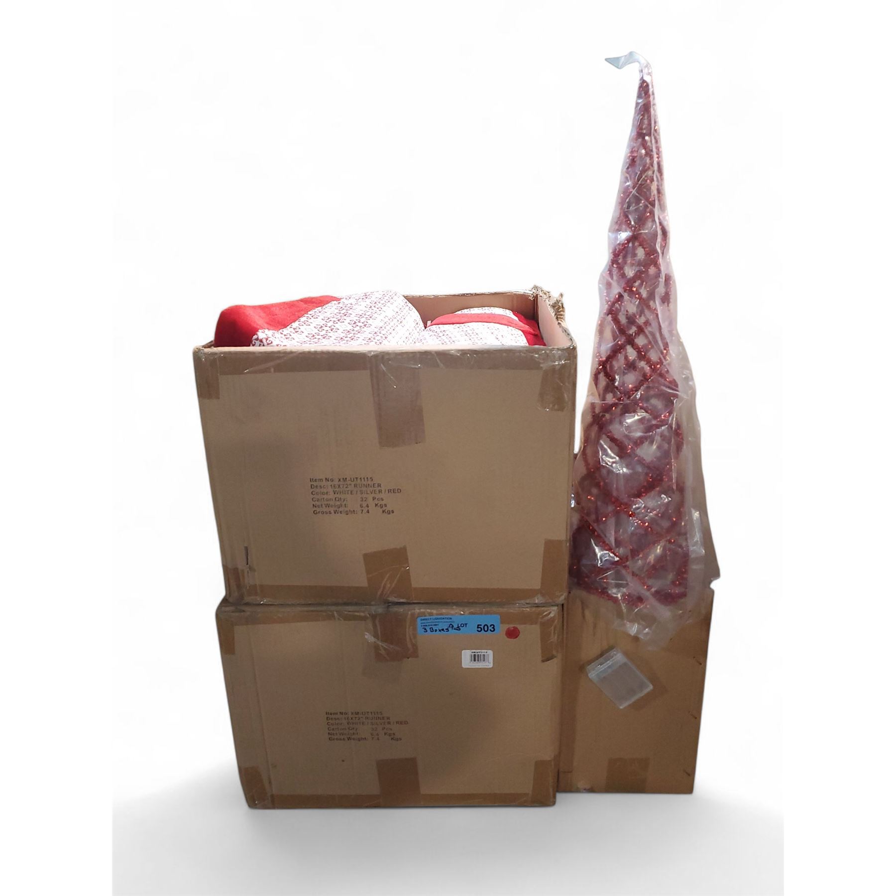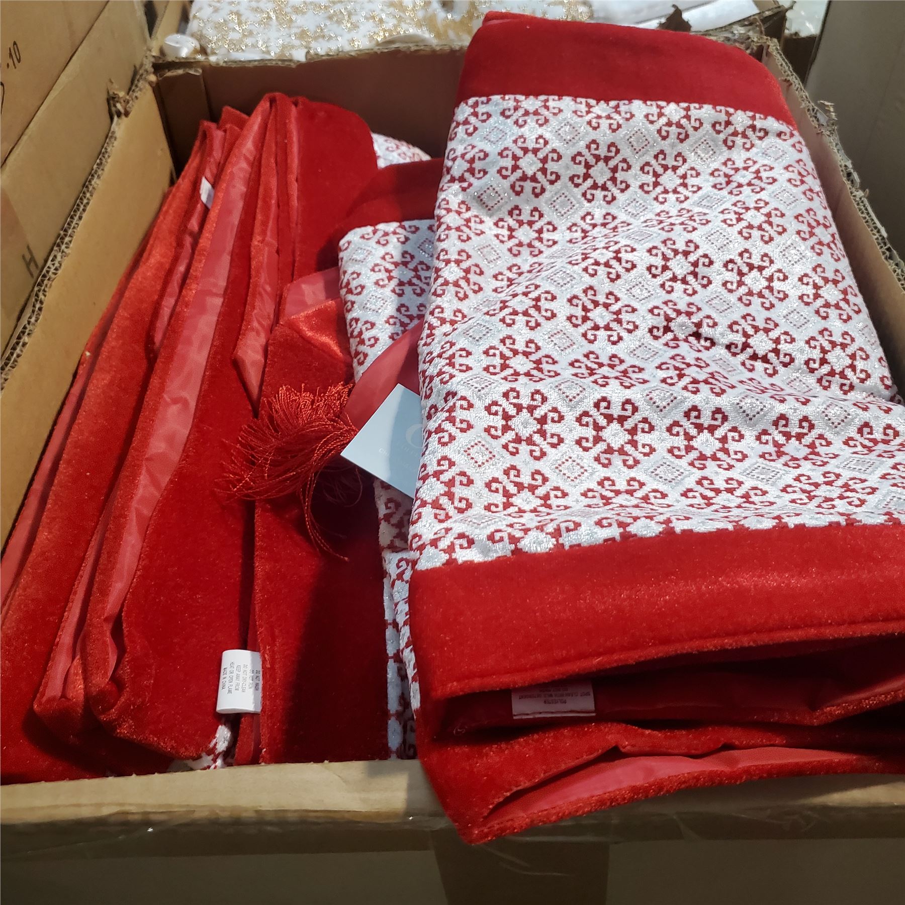 NEW Group of 2 Boxes of Christmas Red & White Runners (16" x 72" - approx. 32 pcs per Box) & 1 Box of Red Cone Tree Wire Glitter LED Lights