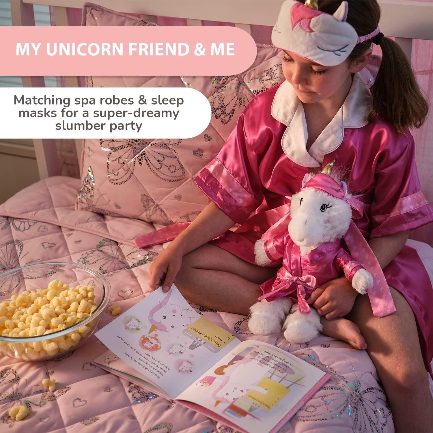 Tickle & Main Unicorn Gifts for Girls Sleepover Set of 4, Includes Unicorns Storybook, Plush Stuffed Animal, Sleep Mask & Robe, 4 Years Old and Up ( 12 in box)