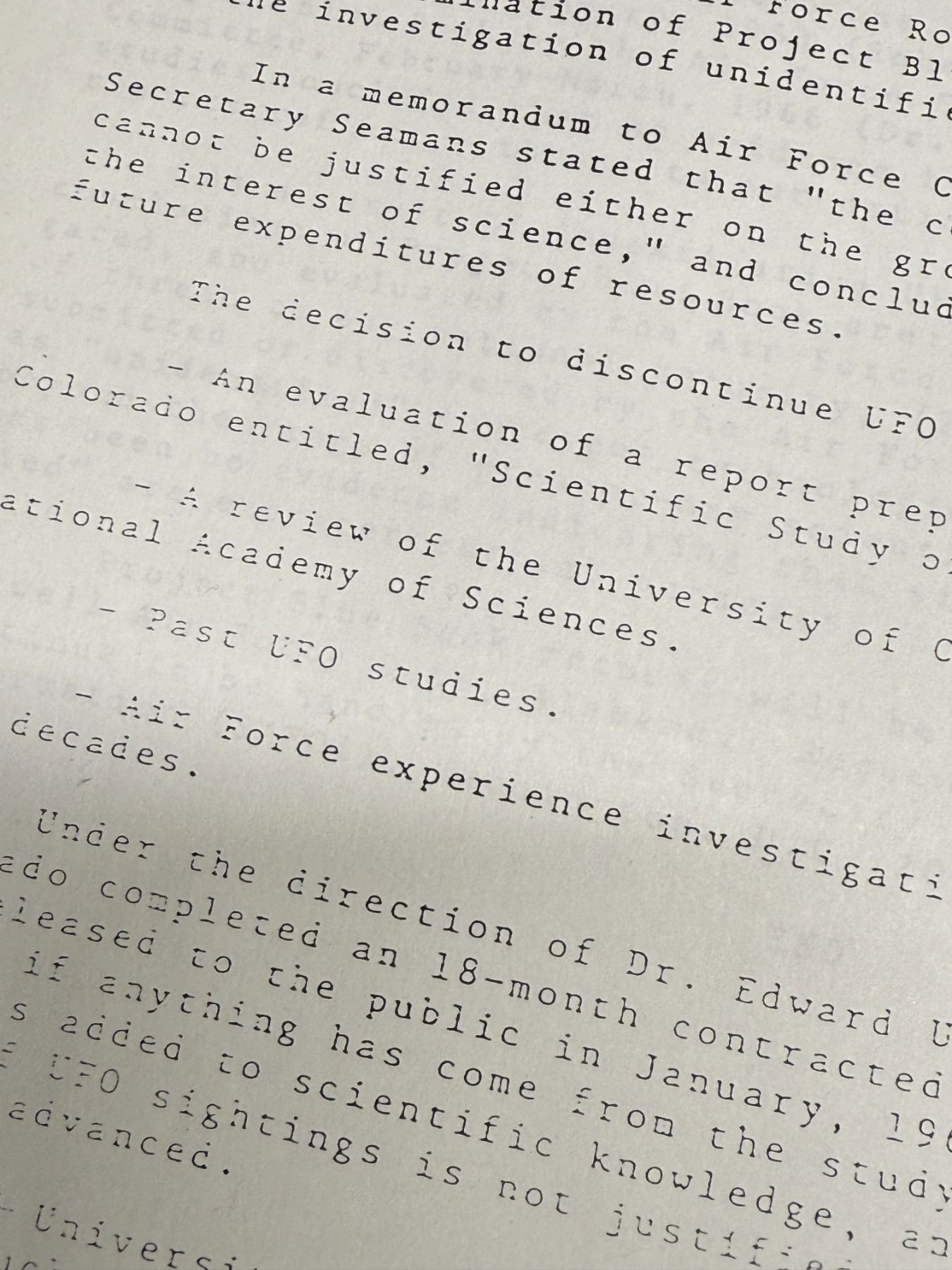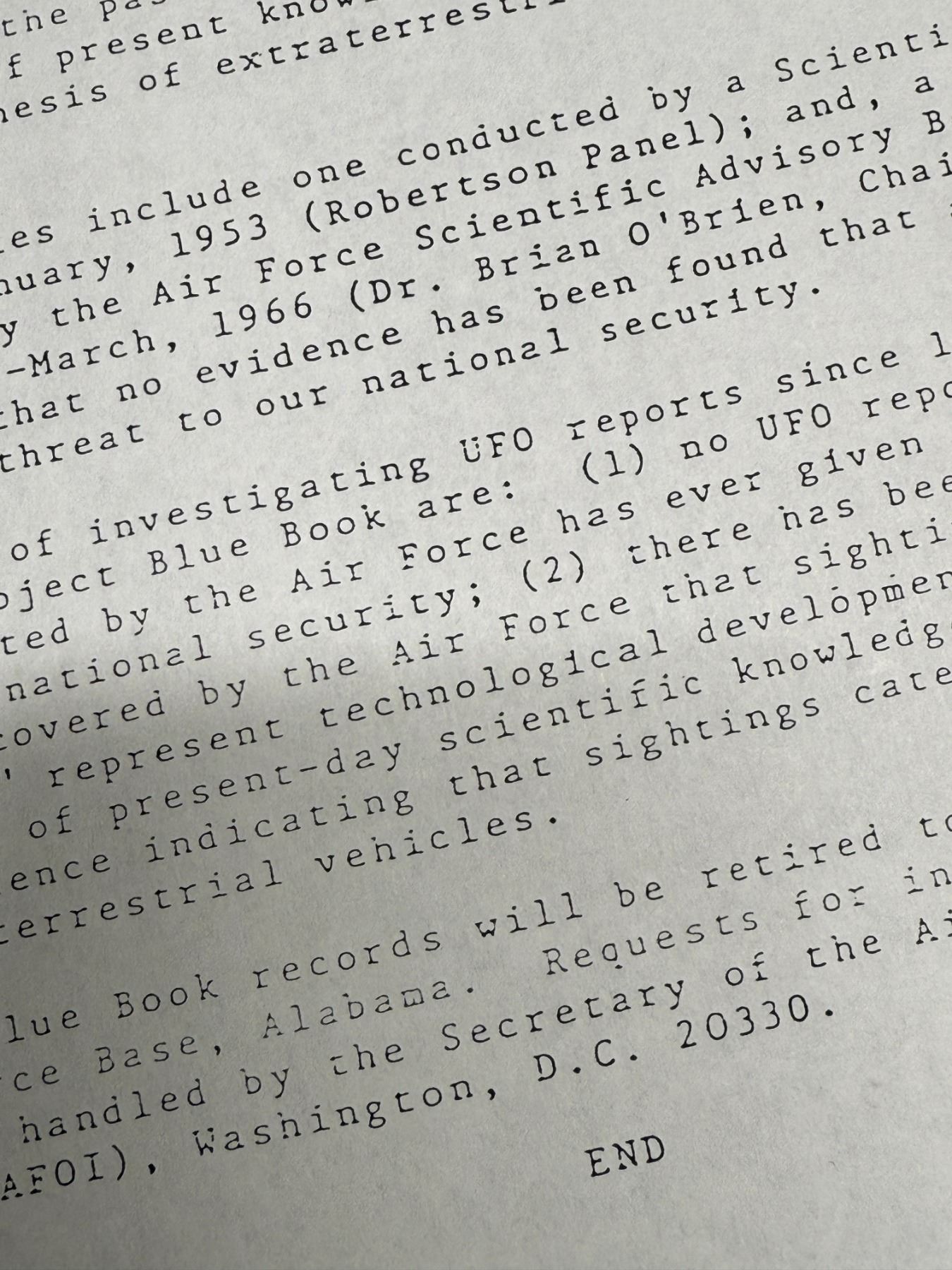 Copy of a news release sent out by the US government to terminate Project: "Blue Book" & a copy of a cover sheet of Project "Blue Book"