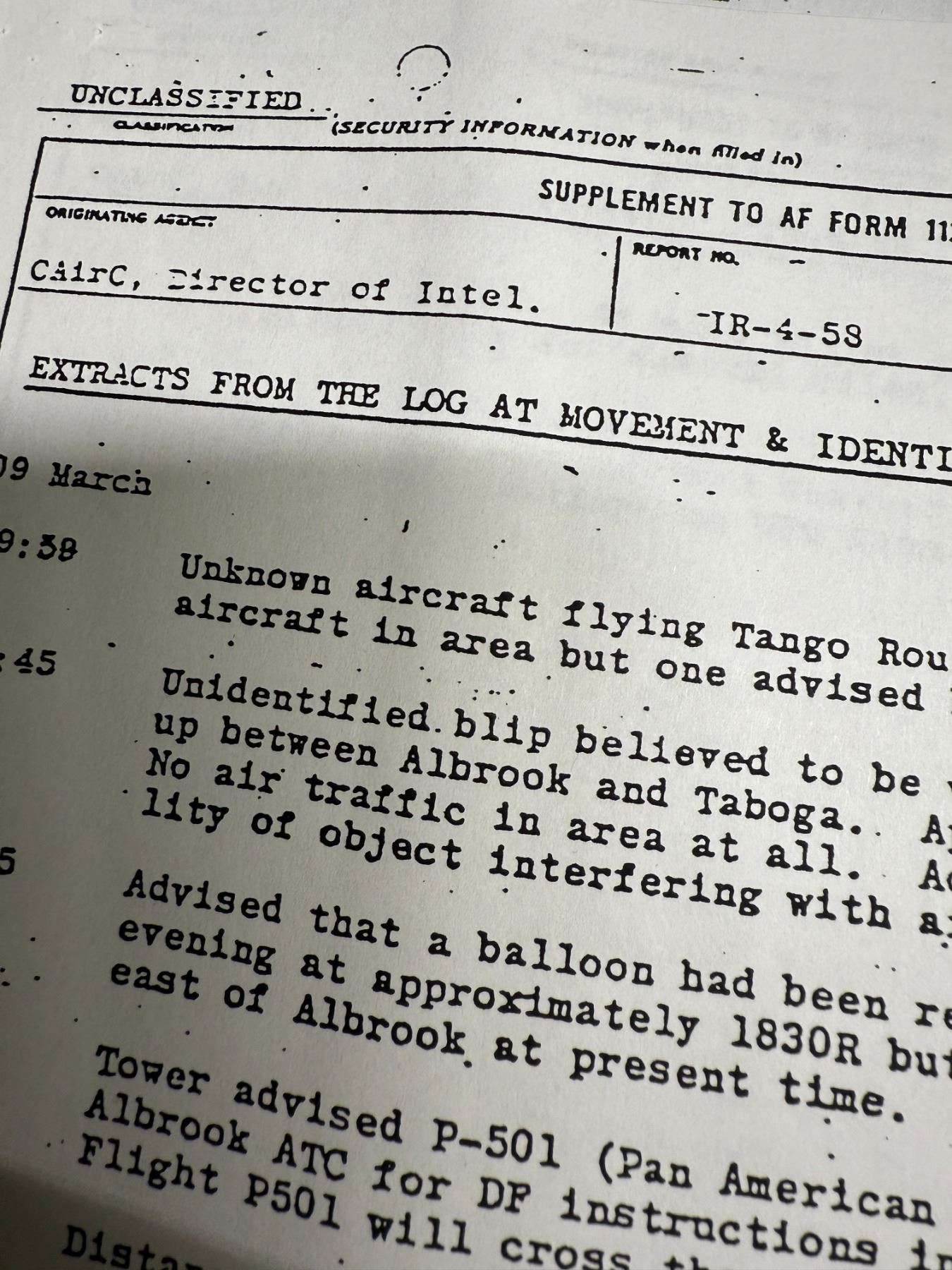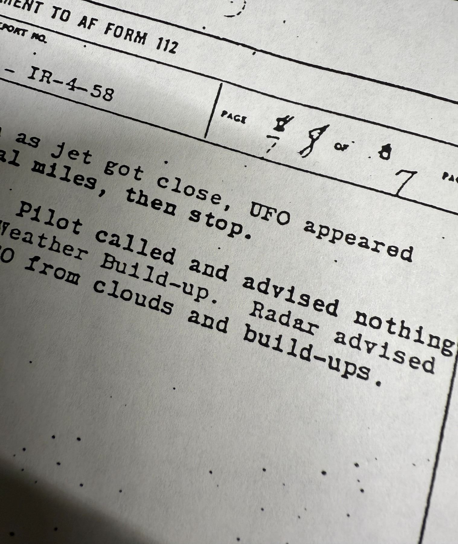 This document outlines an Air Force Pilots recorded interaction with a UFO