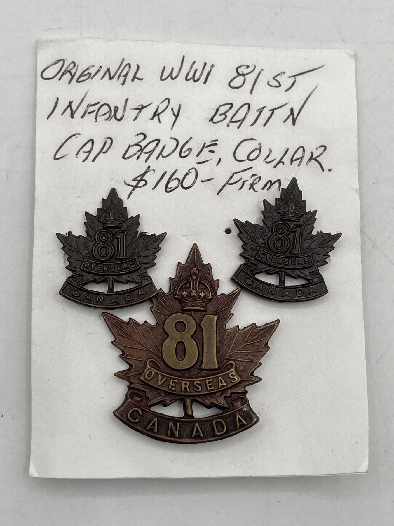 Original Canadian WWI 81st Infantry Battalion Collar Badges
