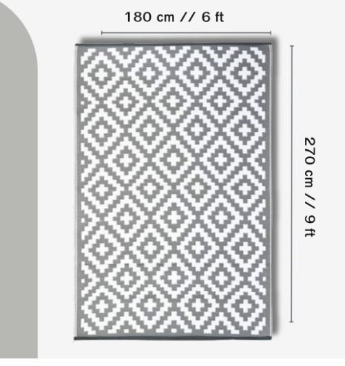 Outdoor Area Rug Mat Reversible & Waterproof made with Recycle Plastic Straws for Patios, Outdoors, Camping, Balcony, Deck & More