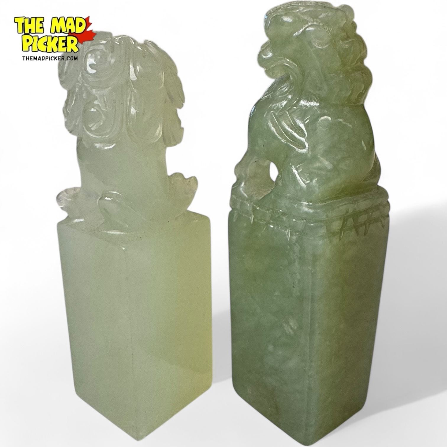 Pair Of Carved Jade Foo Dog Seals