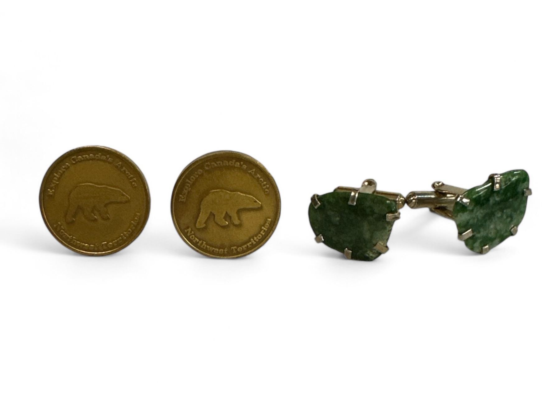 Pair Of Green Stone Cuff Links & Pair Of North West Territories Cuff Links