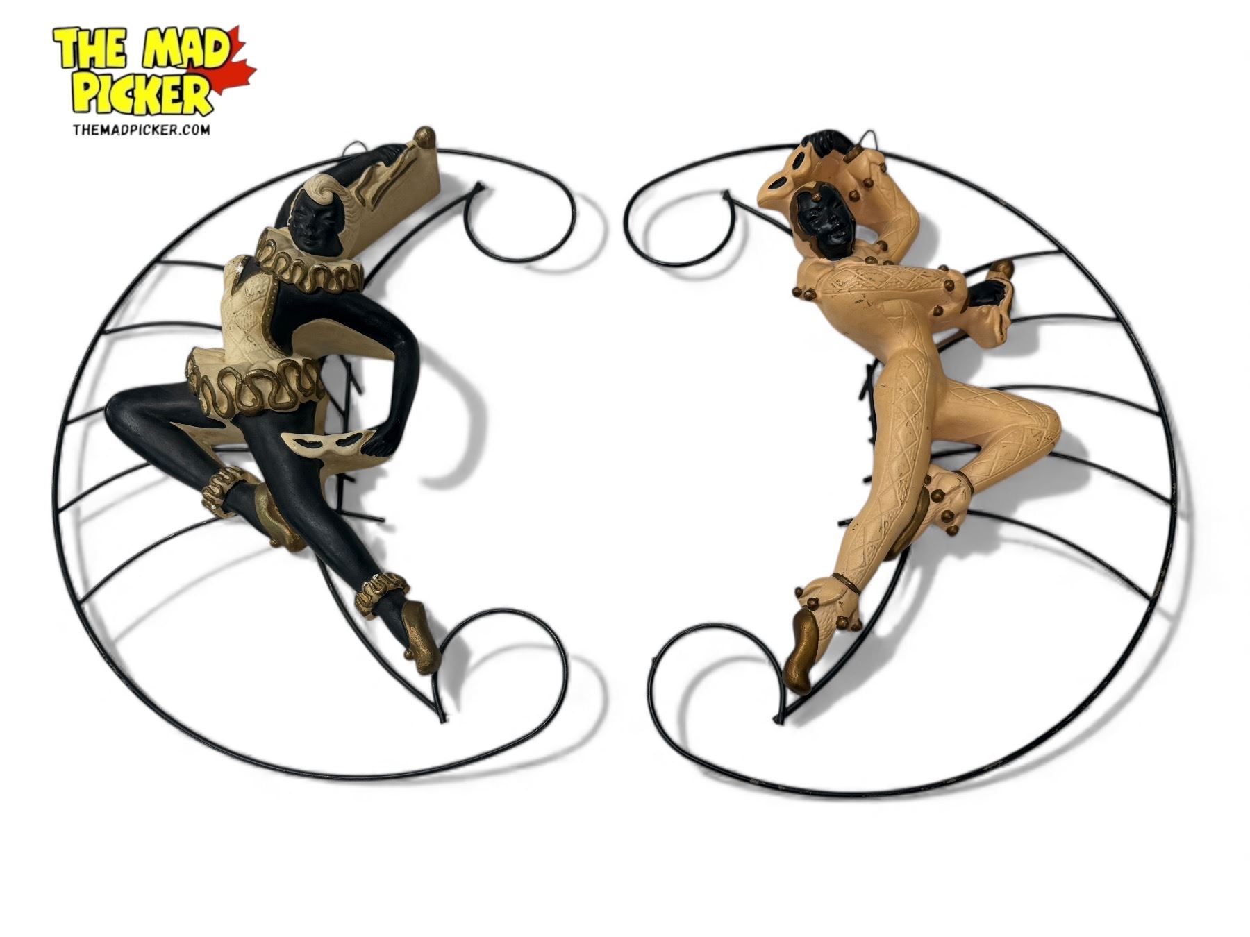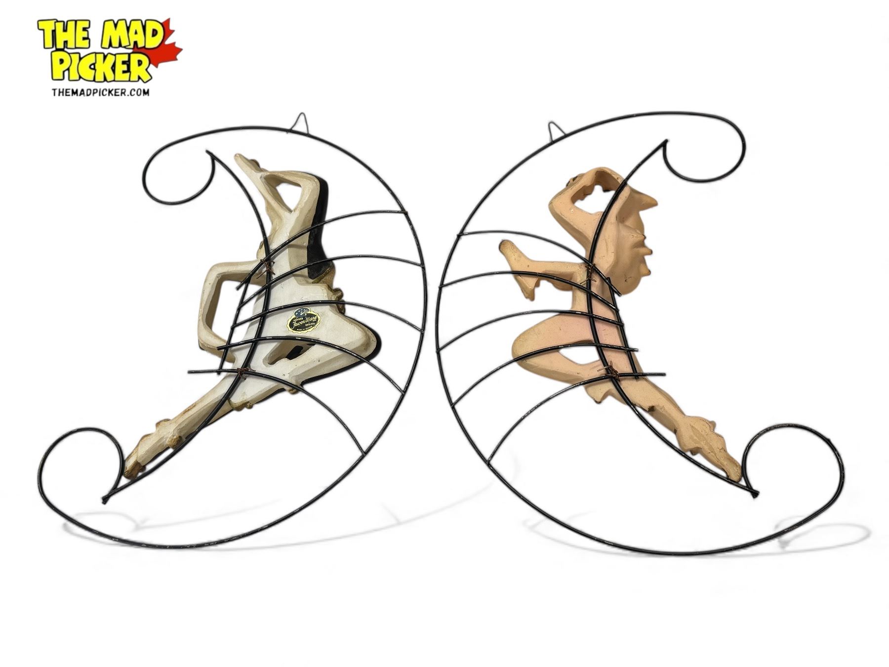 Pair Of Vintage Chalkware Ballerinas On Crescent Moon
