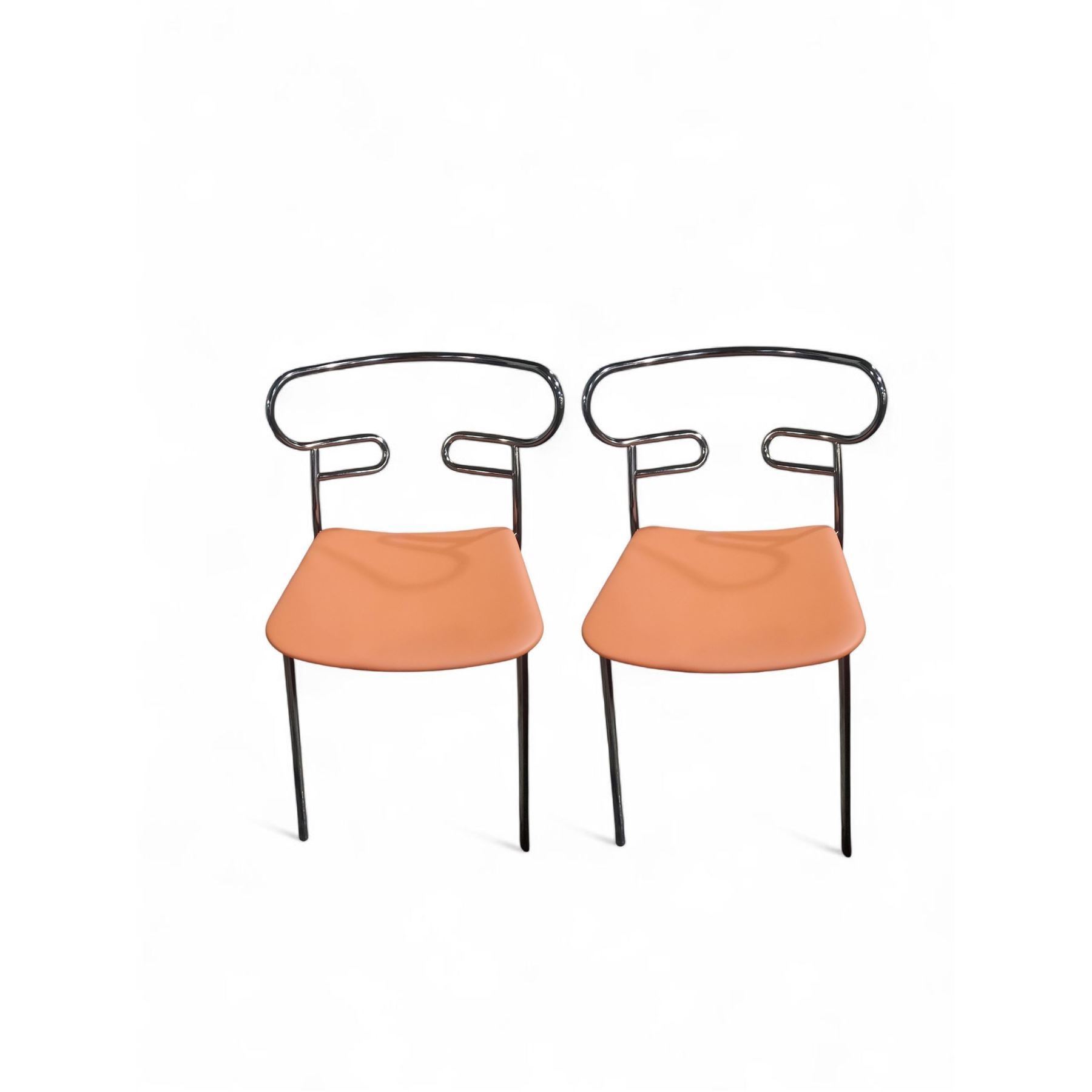 Pair of Traba Chrome Orange Seat Faux Leather Chairs - R.V. $499, Total Value $999