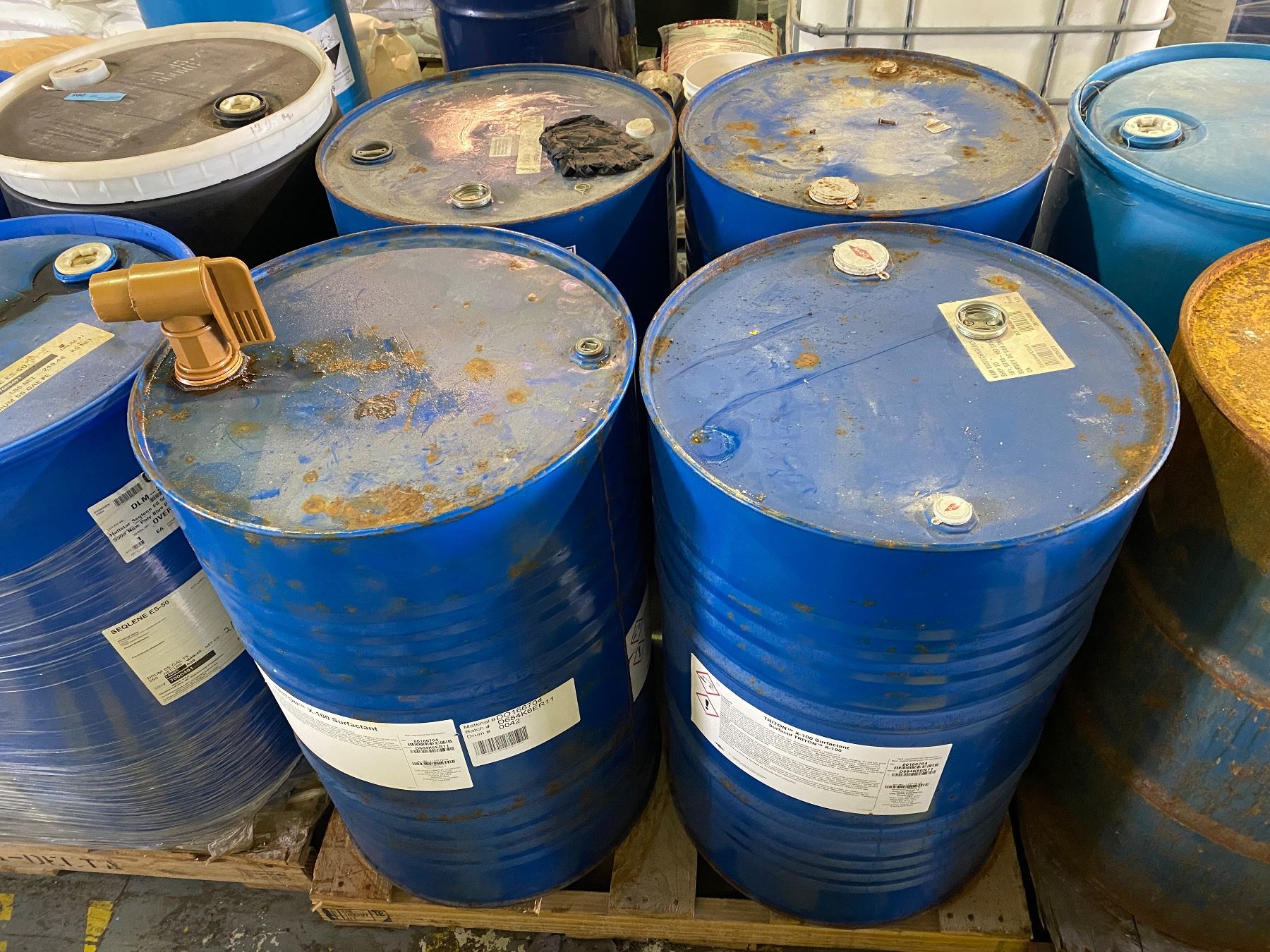 Pallet - 55G drum Mobil Isopar / x3 55G drums Troton X-100 Surfactant (One w/ spout)
