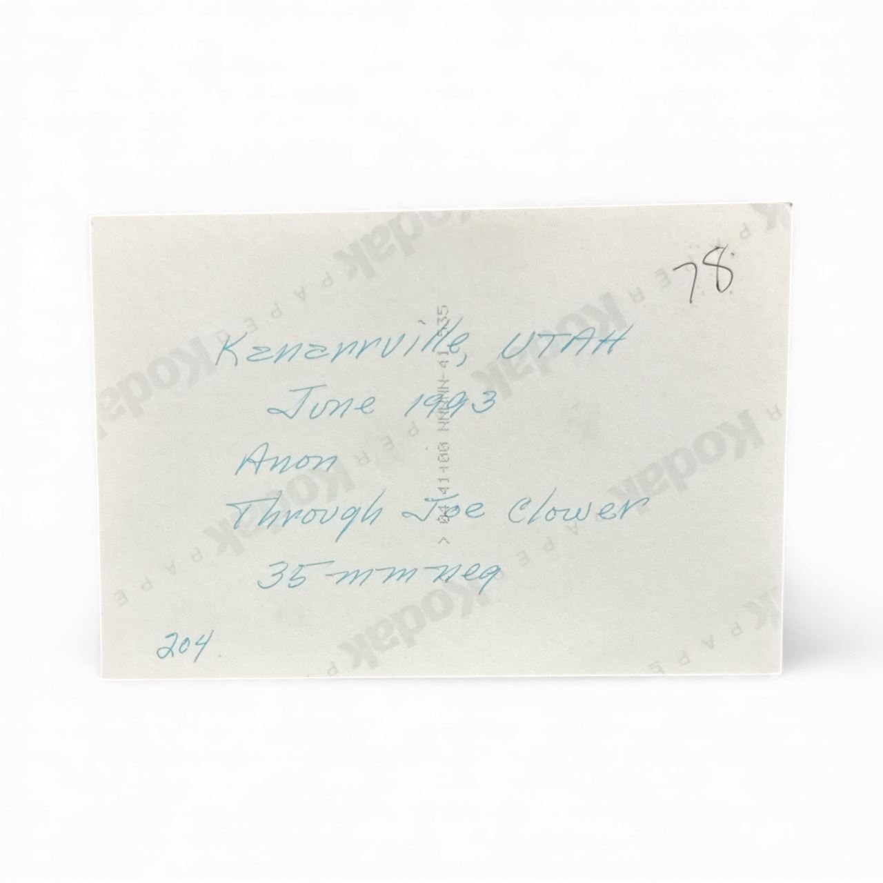 Photograph: Utah UFO - Kanarraville Utah USA, June 1993 - Acquired through Joe Clower