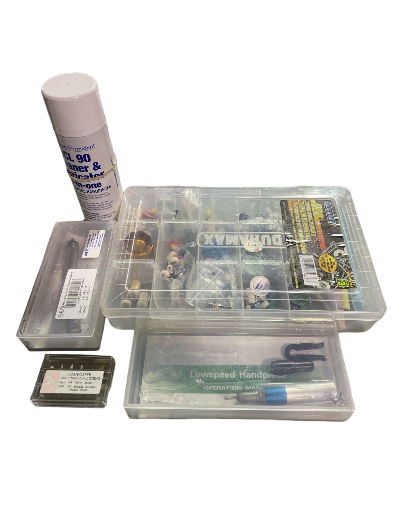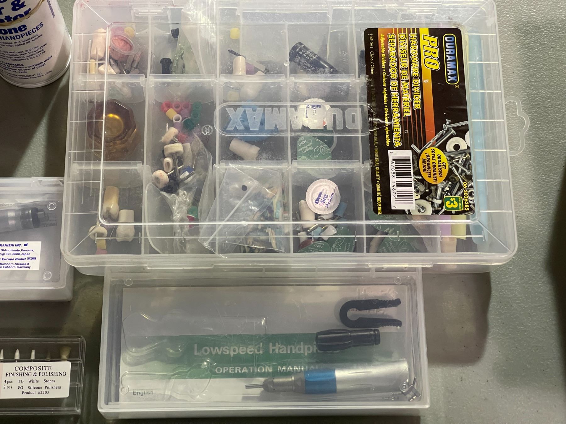 Plastic Organizer w/ rotary dental tools parts / heads - x2 Rotary dental tools