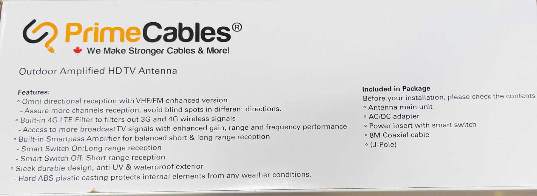 Prime Cables Omni-Directional Digital Outdoor Amplified TV Antenna