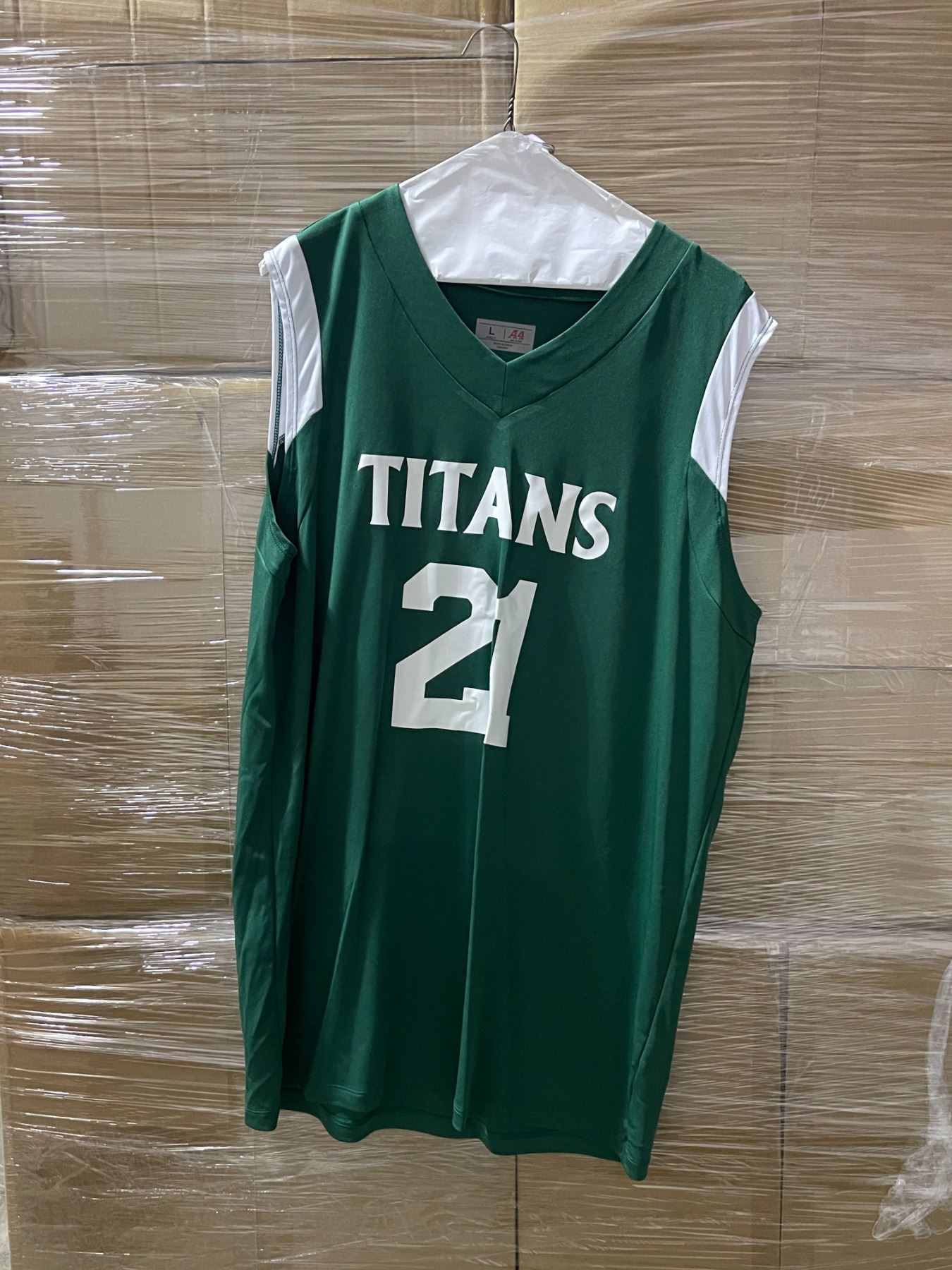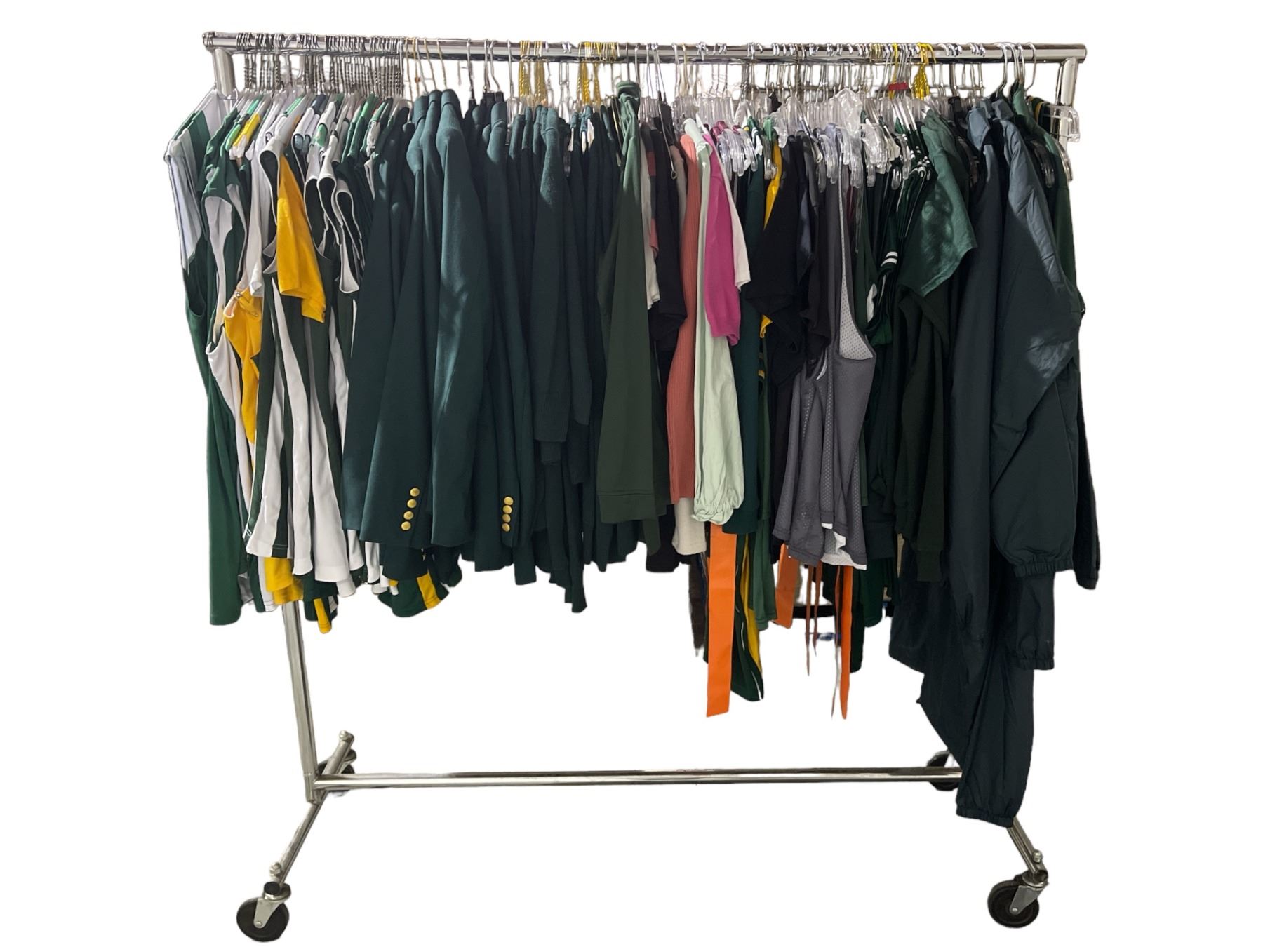 Rack of movie set clothing - Sports jerseys / Matching sport coats / Basketball jerseys - Rack not included