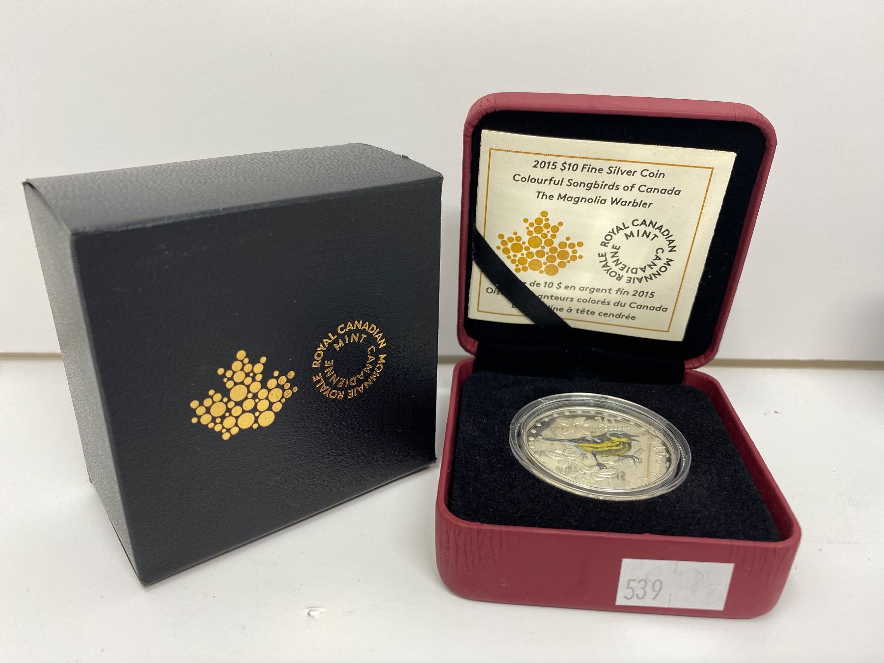 Royal Canadian Mint 2015 $10 Fine Silver Coin, Colorful Song Birds Of Canada The Magnolia Warbler In Original Box
