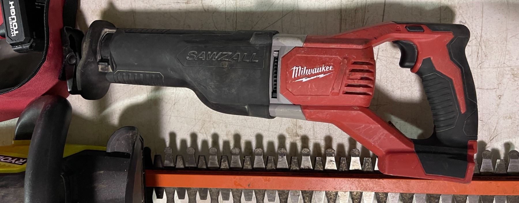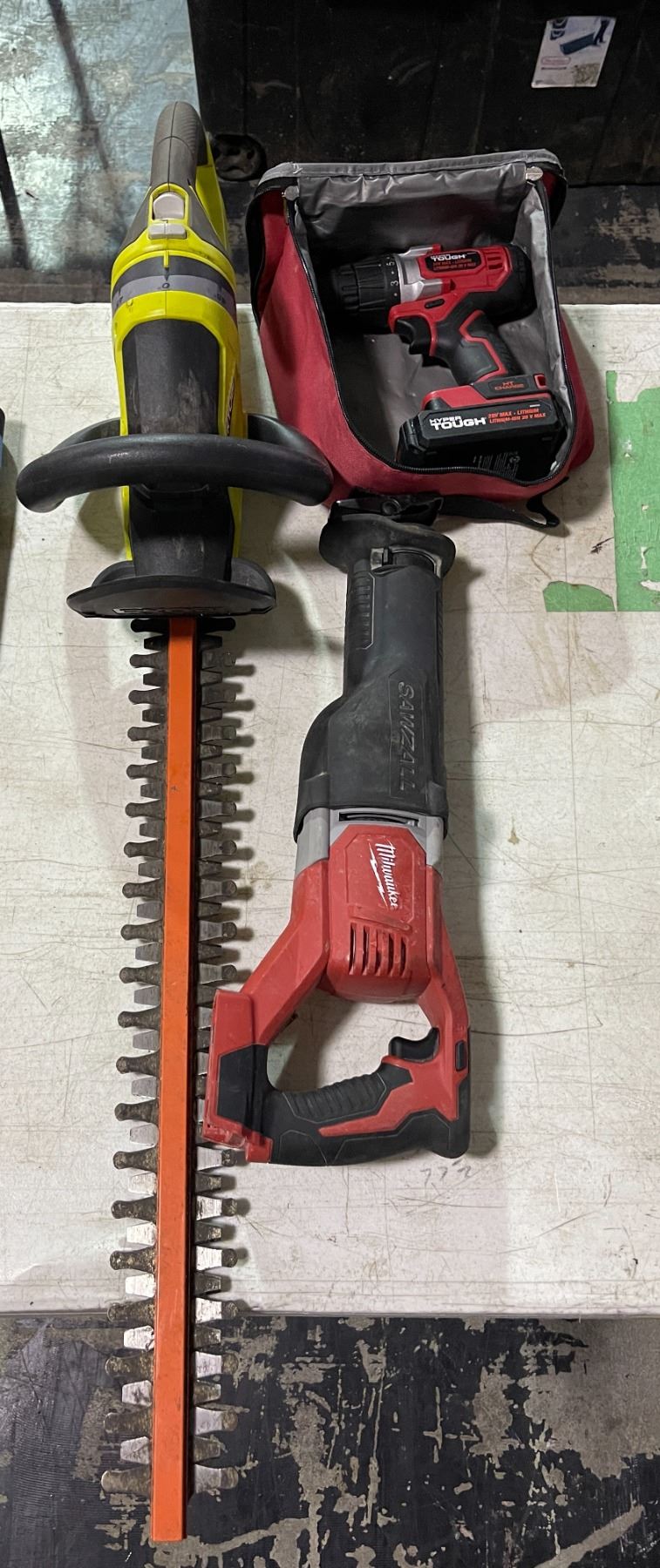 Ryobi 18v cordless hedge trimmer (No battery) (Tested & Working) - Milwaukee M18 cordless Sawzall (Not Working)
