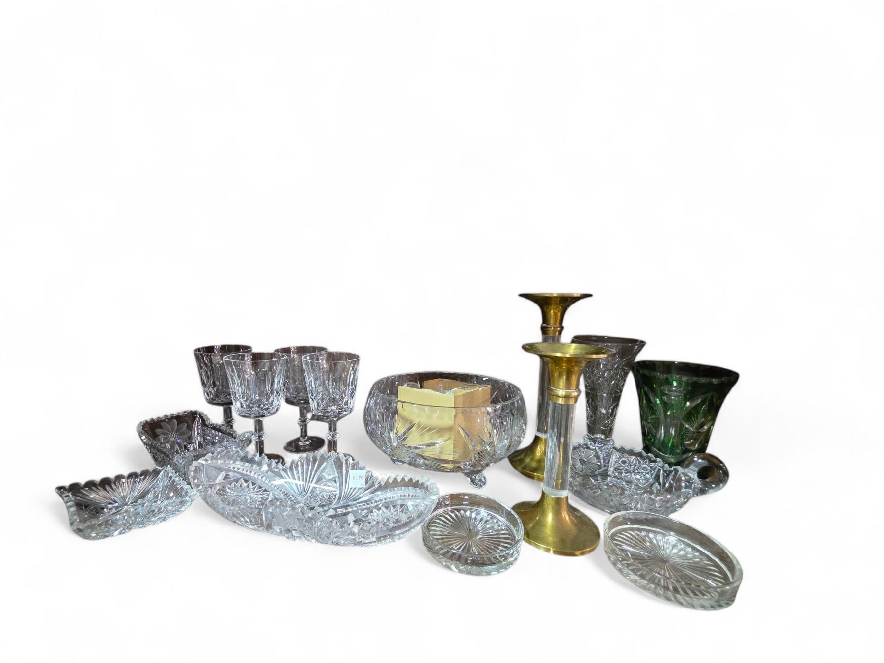 Shelf of Crystal and Glass Glasses, Dishes, Candler Holders, Vases and Bowls
