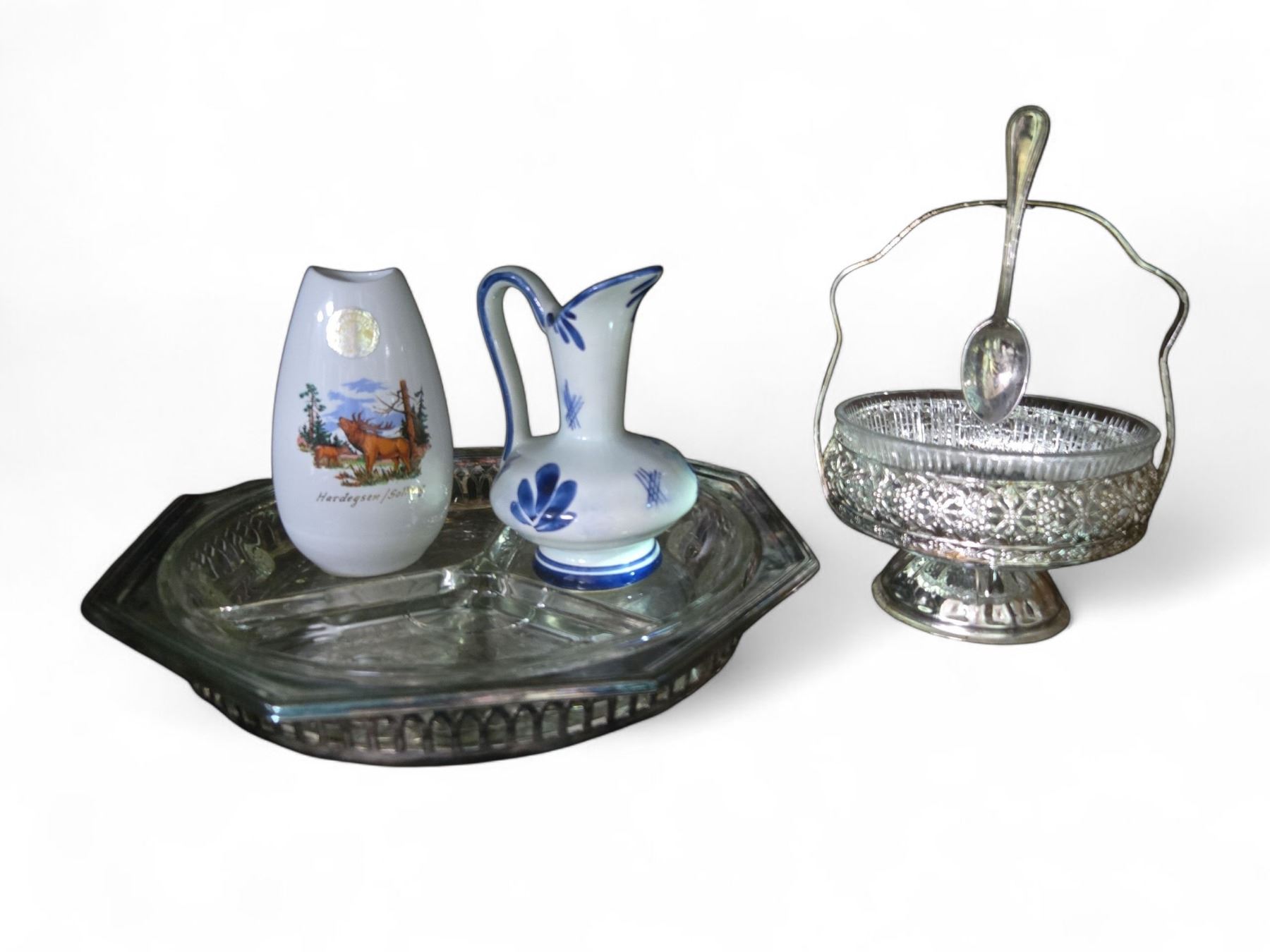 Silver Plated Pickle Dish, Compote Dish, Mini Pitcher & Bud Vase