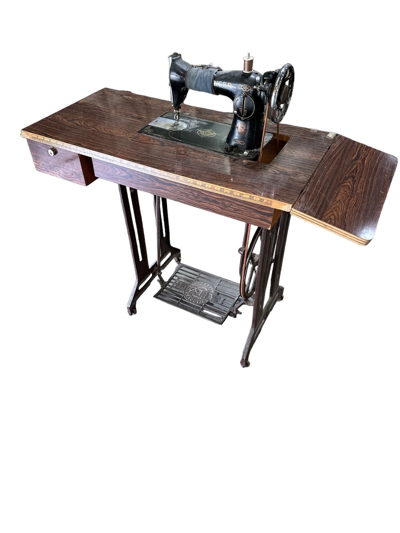 Singer Vintage Leather Sewing Machine w/ table & foot pedal