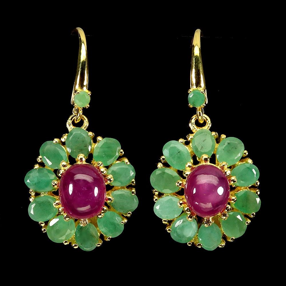 Stunning Emerald and Ruby Earrings in 14k Ywllow Gold-Plated 925 Sterling Silver Appraised Replacement Value CAD 2,200