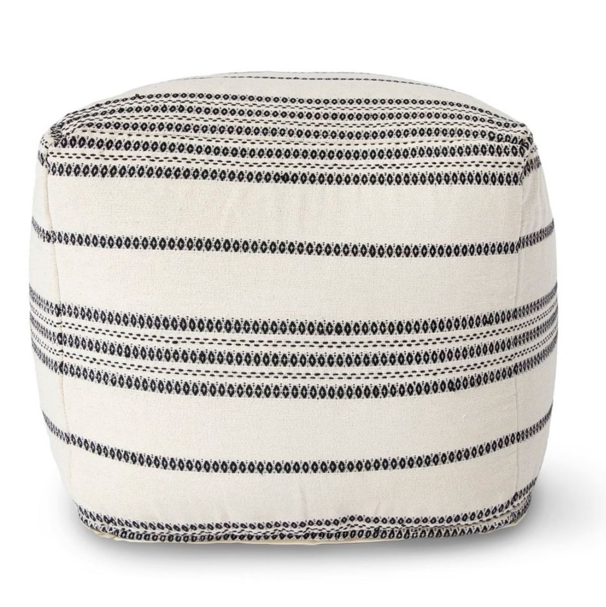 Style In Form "Barcelona Stripe Pouf" - White w/ Black Stripe - 20.5x20.5x20"