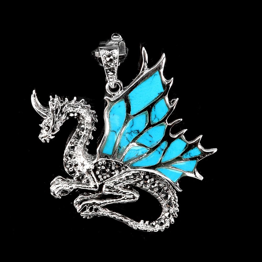 TURQOISE and MARCASITE Pendant in 925 Sterling Silver